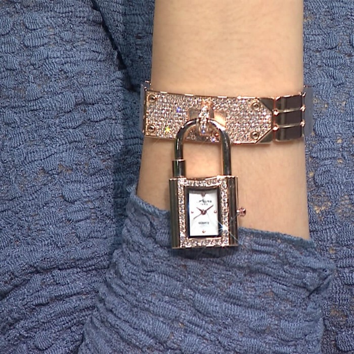 - 贈品:收納袋*1、時尚鎖頭錶(含鍊子)*1、時尚手鍊*1