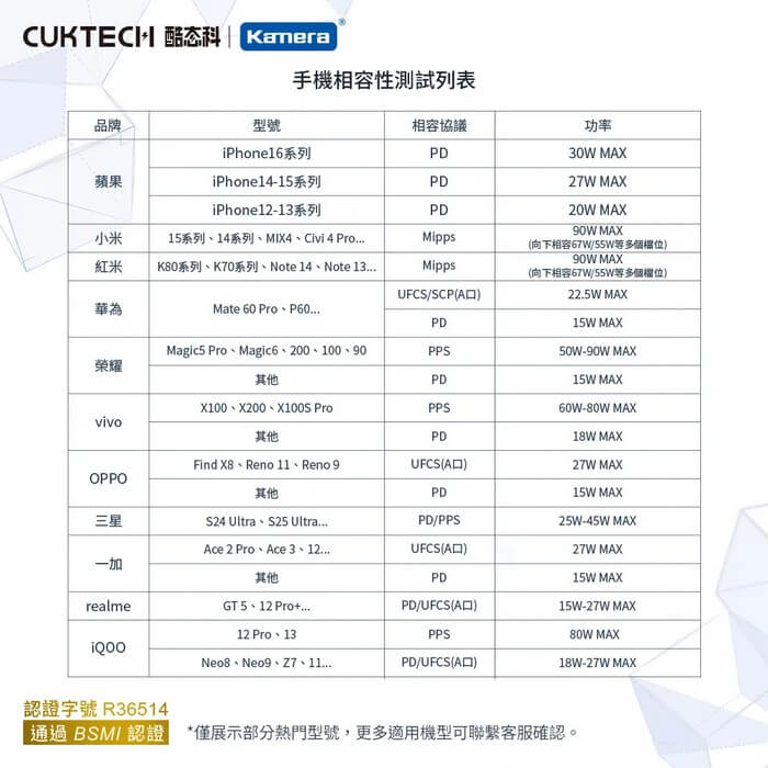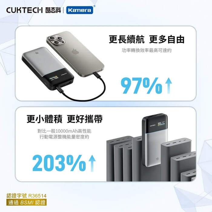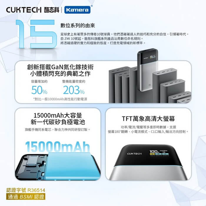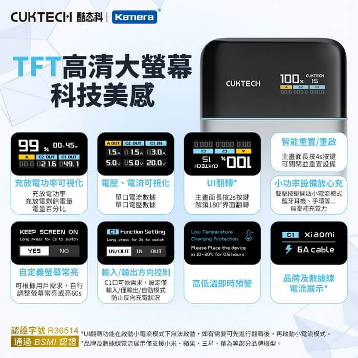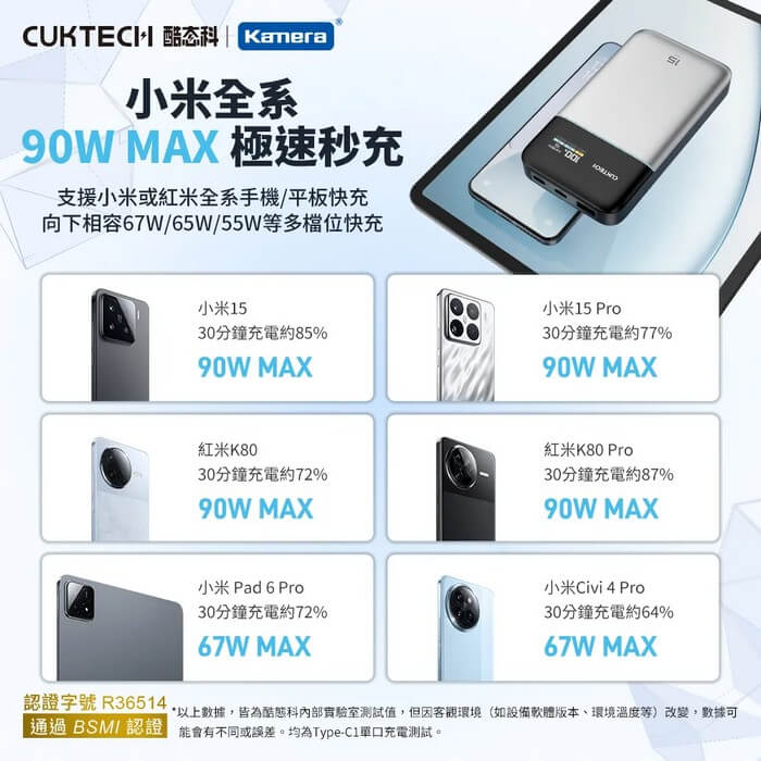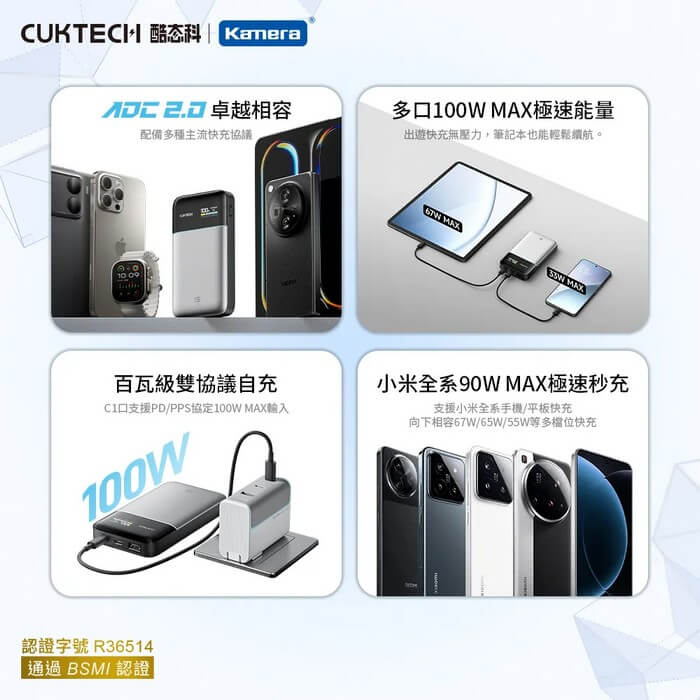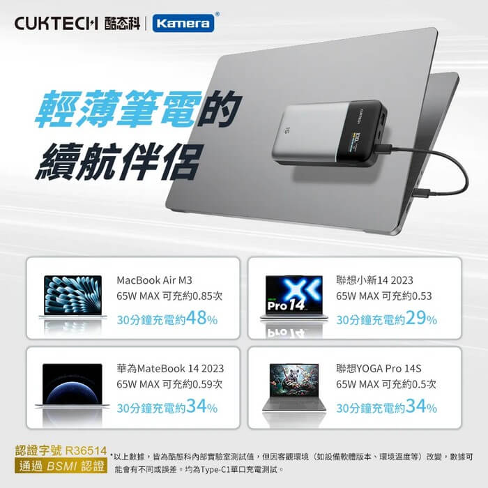- 主商品尺寸/規格/重量/密度:品名:行動電源 型號:PB150S 顏色:鈦灰色 商品材質:PC 電池種類:鋰離子聚合物電池 電池能量:57.75Wh/58.32Wh 11.55V 5000mAh/5050mAh 額定容量:5Vdc/8800mAh, 9Vdc/4600mAh,11Vdc/3600mAh, 12Vdc/3300mAh, 15Vdc/2600mAh, 20Vdc/1800mAh 輸入接口:Type-C 輸出接口:USB-A/Type-C 輸入參數:IN1(Type-C1) 5V⎓3A 9V⎓3A 12V⎓3A 15V⎓3A 20V⎓5A 輸出參數:100W MAX* OUT1(Type-C1) 5V⎓3A 9V⎓3A 12V⎓3A 15V⎓3A 20V⎓3.25A 5-11V⎓6.1A 5-20V⎓4.5A 90W MAX OUT2(Type-C2) 5V⎓3A 9V⎓3A 5-11V⎓3A 33W MAX OUT3(USB-A1) 5V⎓3A 9V⎓3A 5-11V⎓3A 33W MAX 多 口:5V⎓6A(OUT1 5V⎓3A OUT2 5V⎓1.5A OUT3 5V⎓1.5A) 9V⎓9A(OUT1 9V⎓6A OUT2 9V⎓3A) 11V⎓9.1A(OUT1 11V⎓6.1A OUT2 11V⎓3A) 筆電充電最大輸出:65W MAX 使用溫度:5℃~35℃ 行動電源轉換效率:75.4%(5V⎓3A) 充電時間:約 1.5 小時(65W以上功率充電器,包裝內附 Type-C 轉Type-C 充電線,IN1接口) 約 4 小時(18W充電器,包裝內附充電線) 注意:Type-C 口輸出電流大於 3A 時,需要使用包裝內 Type-C 轉Type-C 充電線。 本商品充電功率大,推薦65W以上功率的充電器搭配包裝內充電線使用。 *峰值功率 100W Max(OUT1 (Type-C1) = 11 V/6.1 A + OUT2(Type-C2) = 11 V/3.0 A"), 持續滿功率拉載5分鐘後會主動降功率至55W OUT1(Type-C1) = 11 V/3 A + OUT2(Type-C2) = 11 V/2A") 邊充邊放參數: 1. C1 15V3A充電,C2/A口 11V3A放電 2. C1 15V3A充電, C2+A總功率5V3A放電 BSMI認證字號:R36514 商品尺寸:約132.1×72×21mm 包裝尺寸:約165×76×22mm 商品淨重:約305.4g 商品毛重:約364.4g 包裝內容:行動電源×1、充電線×1、使用說明書×1 備註:此賣場不含主機相關展示商品