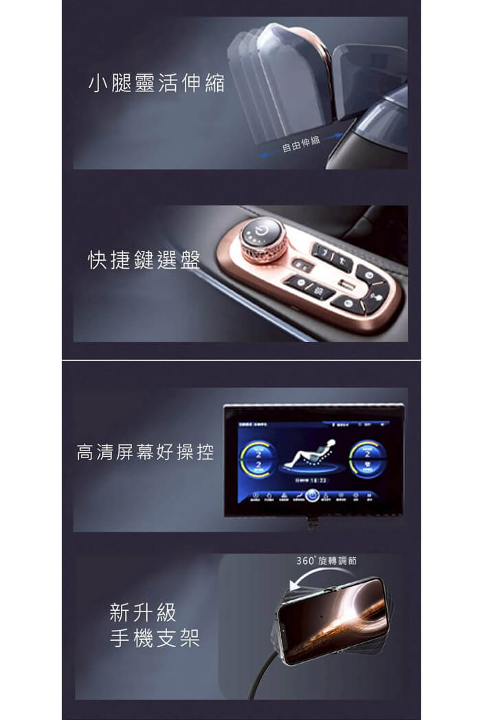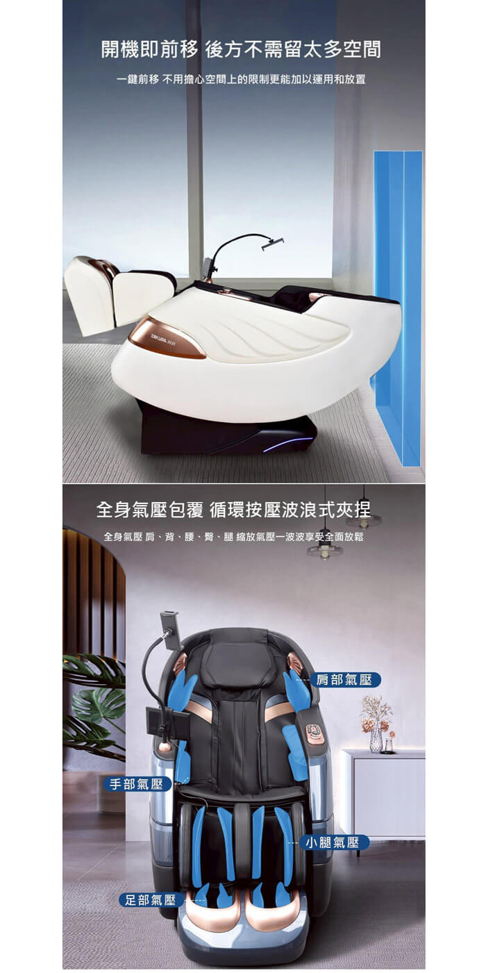 高磅數全身氣壓按摩,腿部可靈活伸縮。