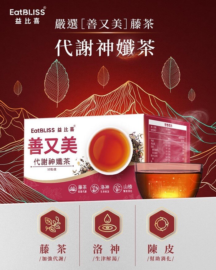 - 主商品:【益比喜 EatBLISS】善又美代謝神孅茶(10包/盒)X3