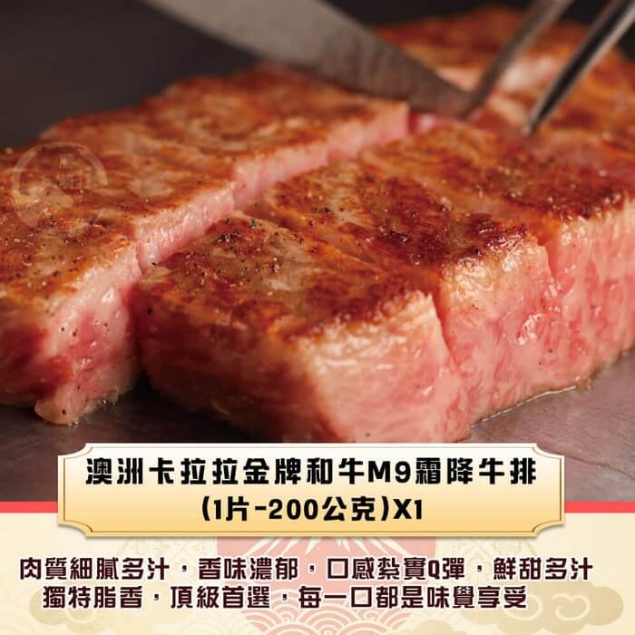 - 主商品:【勝崎生鮮】澳洲M9和牛超值6件組(970公克/6包)