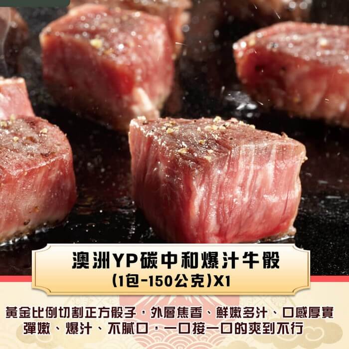 - 材質/食材:1-澳洲日本種M9+極厚切和牛牛排(1片-300公克)x1包 產地:澳洲 成份:新鮮牛肉(原肉裁切,無任何添加) 保存方式及期限:冷凍-18℃以下一年 2-澳洲卡拉拉金牌和牛M9霜降牛排 (1片-200公克)x1包 產地:澳洲 成份:新鮮牛肉(原肉裁切,無任何添加) 保存方式及期限:冷凍-18℃以下一年 3-澳洲安格斯雪花牛排(1片-100公克)x1包 產地:澳洲 成份:新鮮牛肉(原肉裁切,無任何添加) 保存方式及期限:冷凍-18℃以下一年 4-澳洲YP碳中和嫩肩菲力牛排 (1片-100公克)x1包 產地:澳洲 成份:新鮮牛肉(原肉裁切,無任何添加) 保存方式及期限:冷凍-18℃以下一年 5-澳洲YP碳中和爆汁牛骰 (1包-150公克)x1包 產地:澳洲 成份:新鮮牛肉(原肉裁切,無任何添加) 保存方式及期限:冷凍-18℃以下一年 6-澳洲YP碳中和霜降翼板小排 (1片-120公克)x1包 產地:澳洲 成份:新鮮牛肉(原肉裁切,無任何添加) 保存方式及期限:冷凍-18℃以下一年
