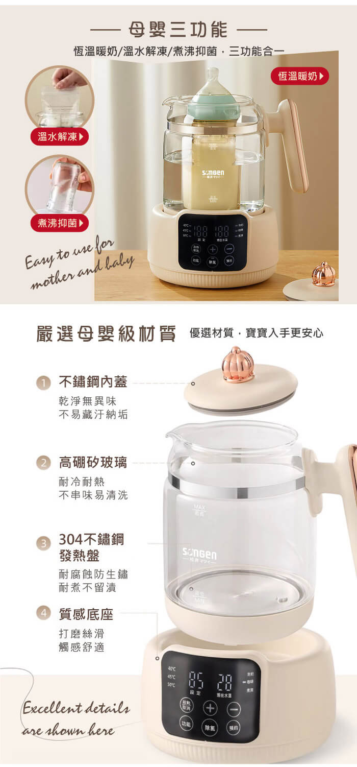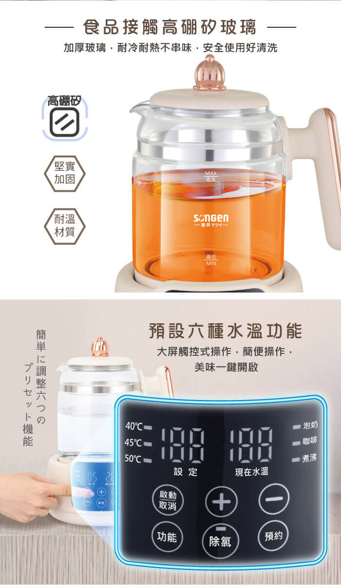 - 主商品:【SONGEN松井】智能恆溫玻璃電熱養生壺/快煮壺/電水壺(SG-A16E)