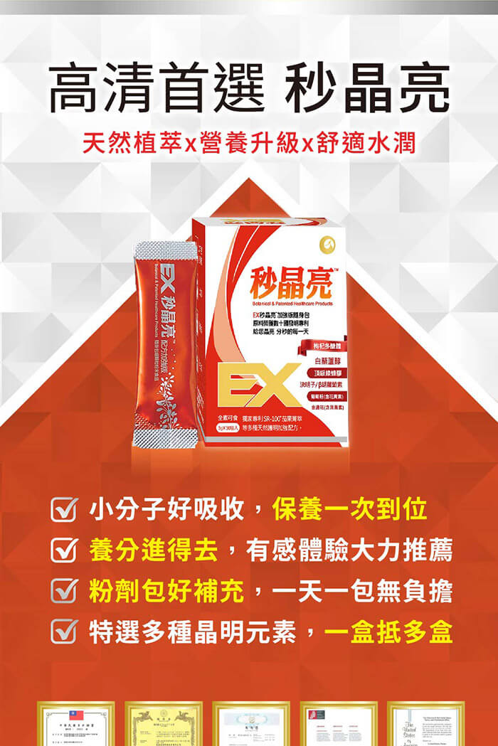 - 主商品:秒晶亮(3g/包;30包)/盒x1