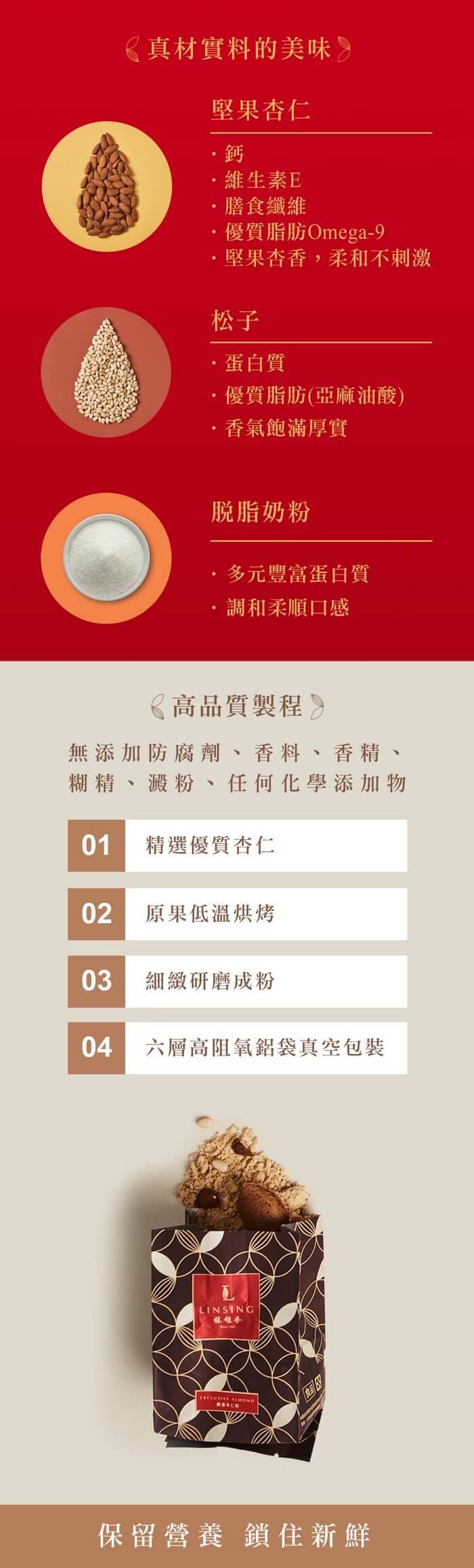 - 贈品:嚴選上真杏仁粉(30g)/包x5