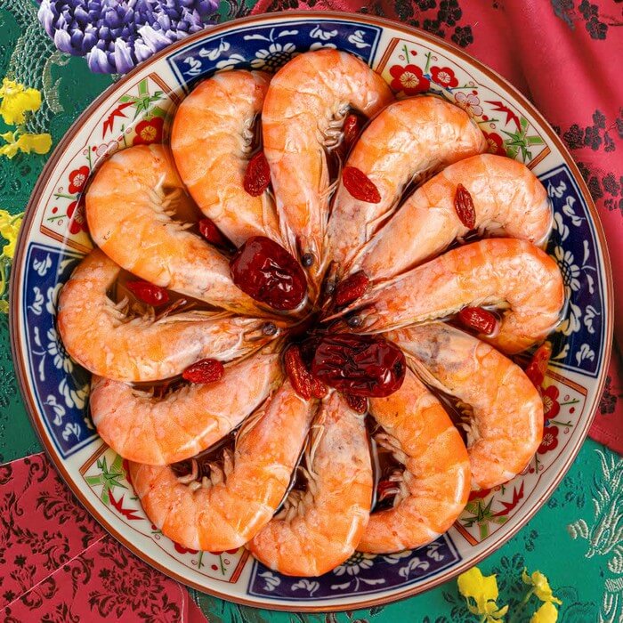 內容物名稱:海水生態鮮蝦、紹興藥膳湯(水、米酒、紹興酒、鹽、紅棗、糖、當歸、川芎、甘草片)、枸杞。