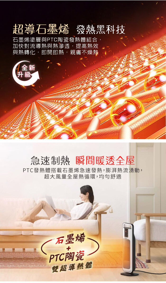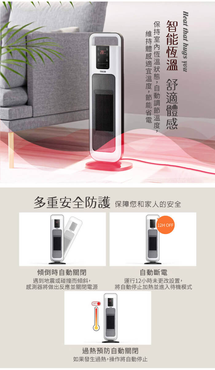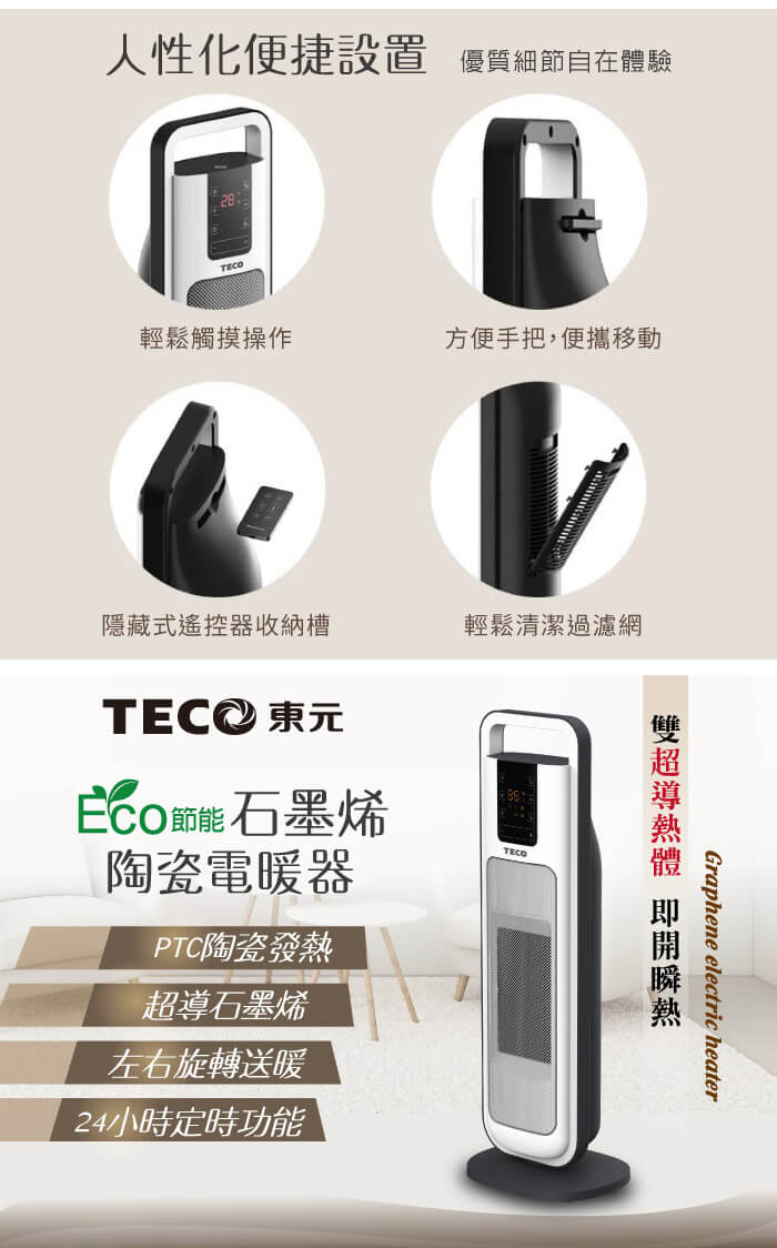 - 主商品:【TECO東元】ECO節能溫控石墨烯陶瓷電暖器/暖氣機/電暖爐(XYFYN3004CBW)