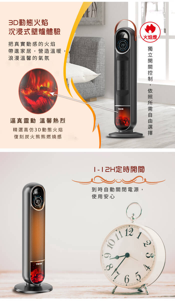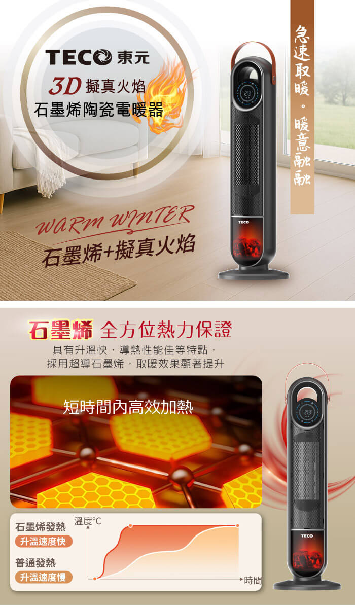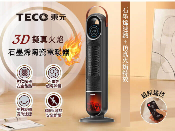 - 主商品:【TECO東元】3D擬真火焰石墨烯陶瓷電暖器/暖氣機/電暖爐(XYFYN3006CBB)