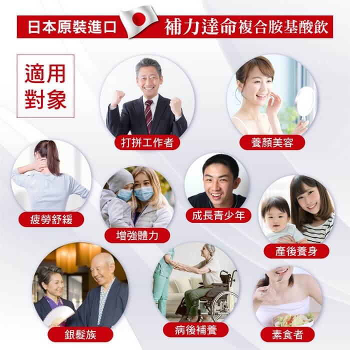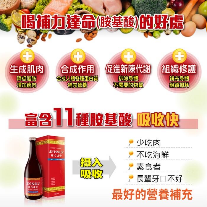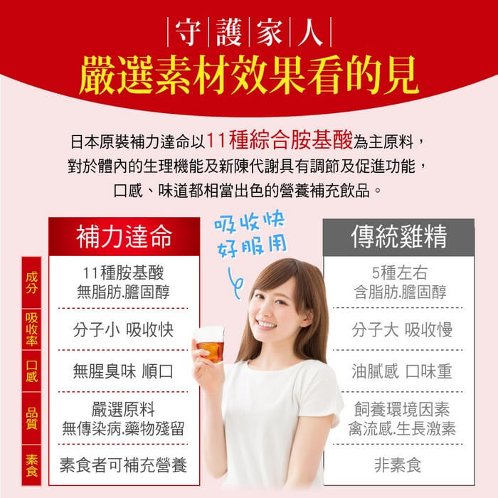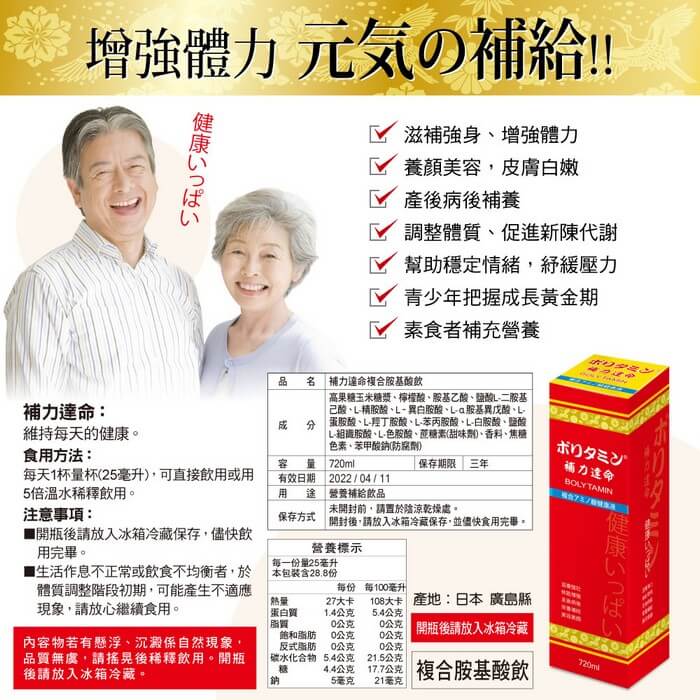 - 品名:補力達命複合胺基酸飲