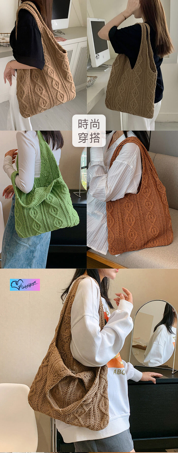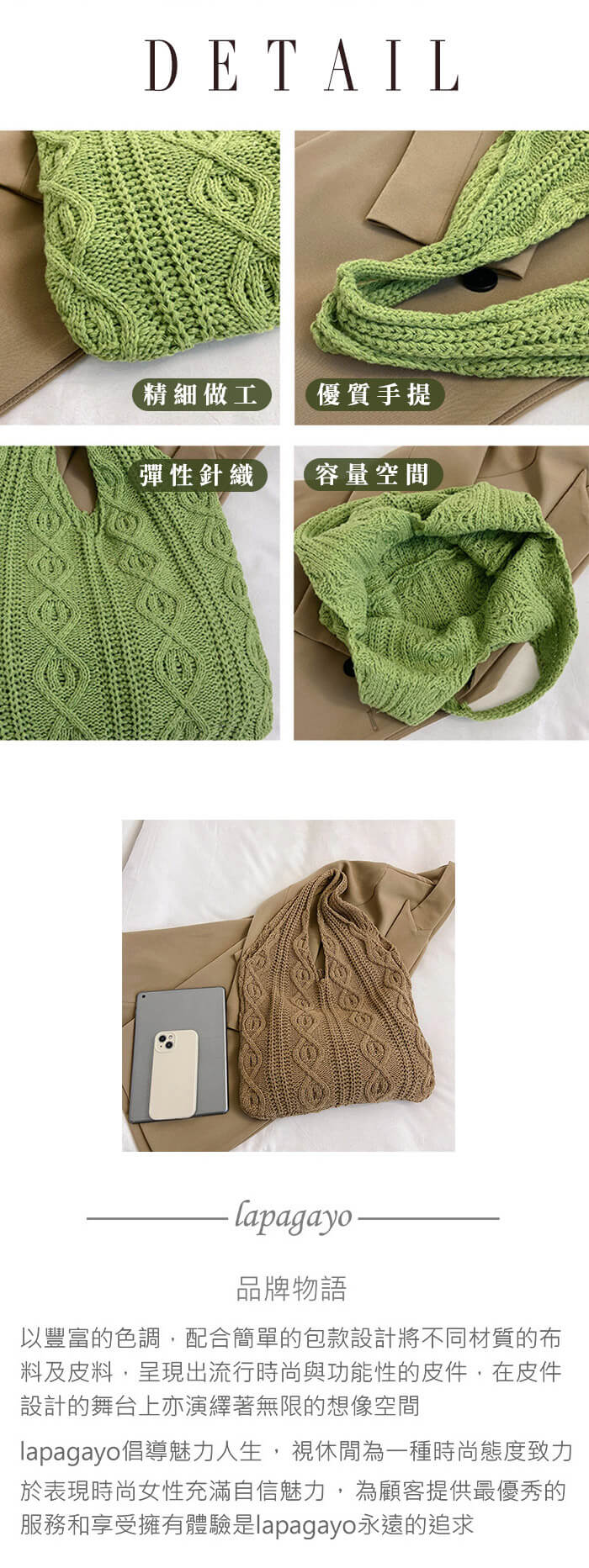 - 主商品:【lapagayo】復古文青手工編織百搭托特包/購物袋(復古焦糖)X1