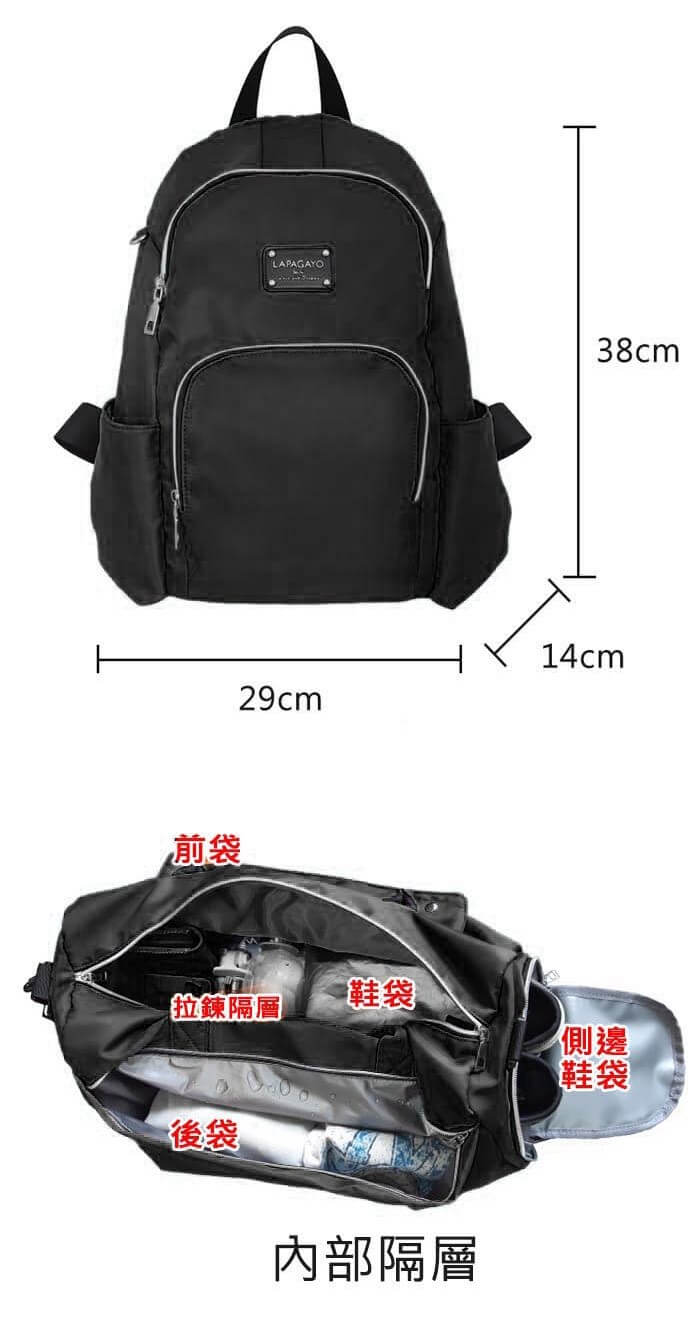 - 主商品: 【lapagayo】都會輕時尚運動休閒防盜後背包組(黑色)X1