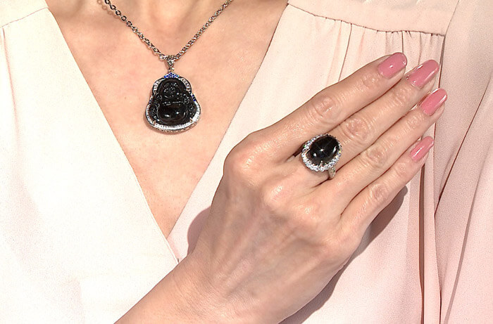 嚴選天然墨翠原石,色澤深邃如墨、通透隱綠。