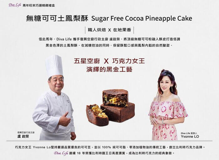 - 主商品:Diva Life 可可土鳳梨酥(5顆/盒)*3盒