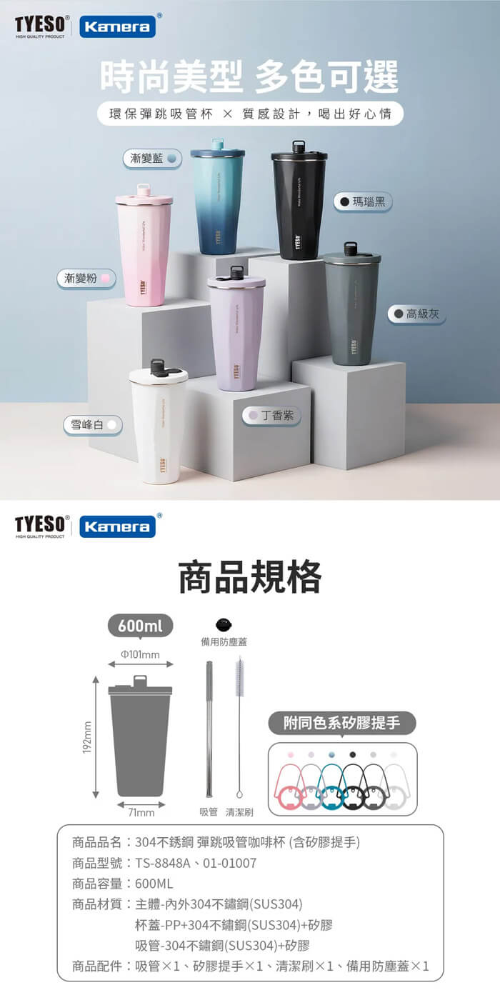 - 材質/食材:主體-內外304不鏽鋼(SUS304) 杯蓋-PP+304不鏽鋼(SUS304)+矽膠 吸管-304不鏽鋼(SUS304)+矽膠