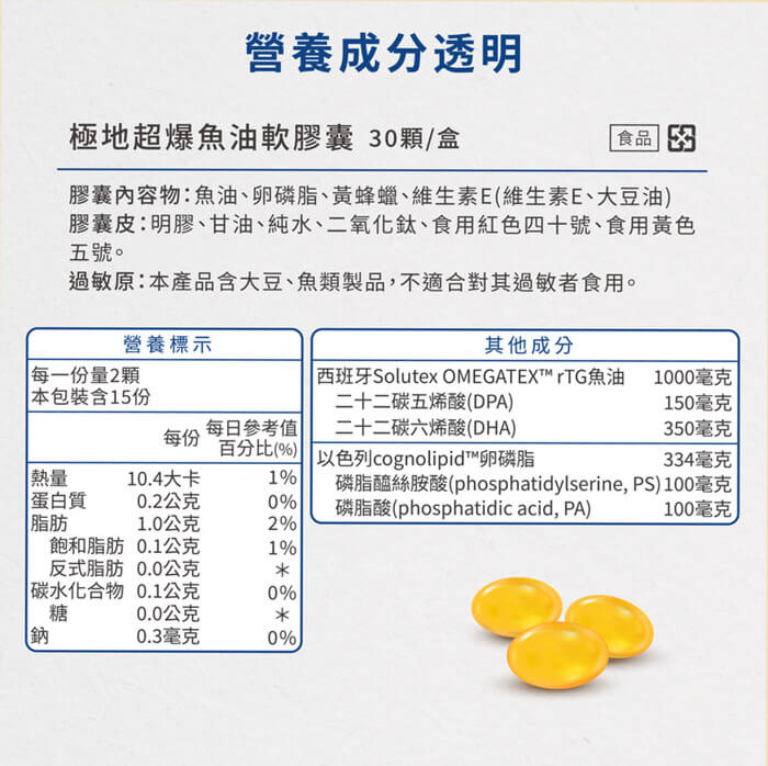 - 主商品:極地超爆魚油軟膠囊(30顆/盒)