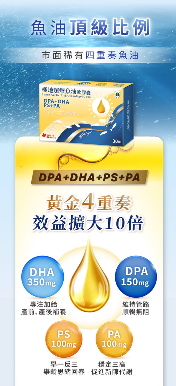 是市場上一般魚油無法達到的「雙效升級配方」。