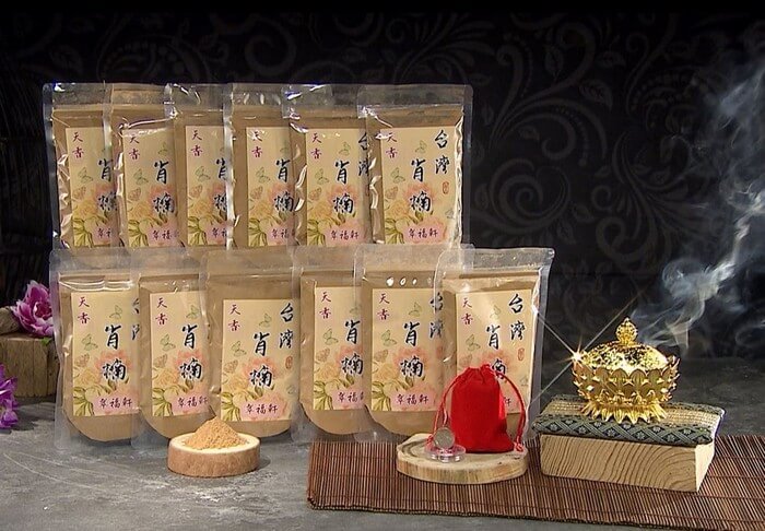 以台灣肖楠木塊直接磨成粉直接包裝。