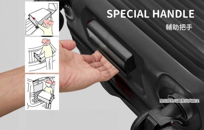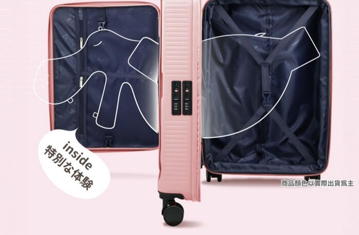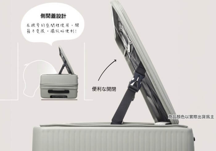 PC硬殼輕量化材質,箱身強韌耐刮耐摔,使用輕巧不費力。