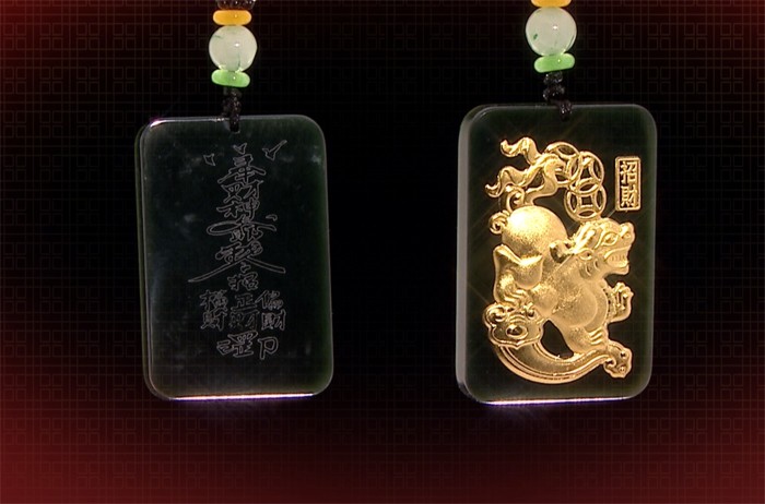 3D貼金工藝,不易磨損、變形,玉珮背面雷雕。