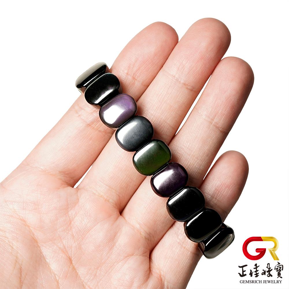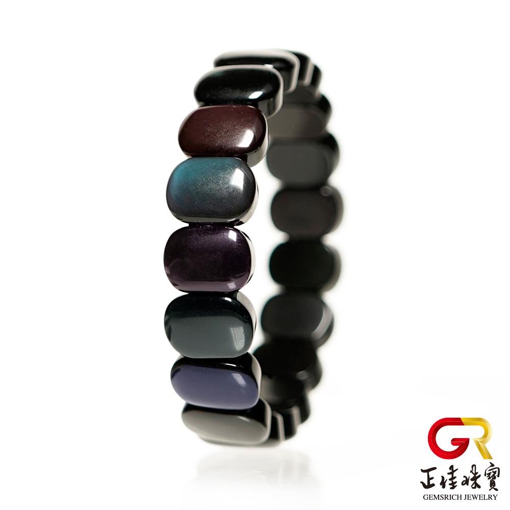 - 主商品:【正佳珠寶】彩虹黑曜石 高品雙眼黑曜 10x14mm 彩虹黑曜石手排|日本彈力繩