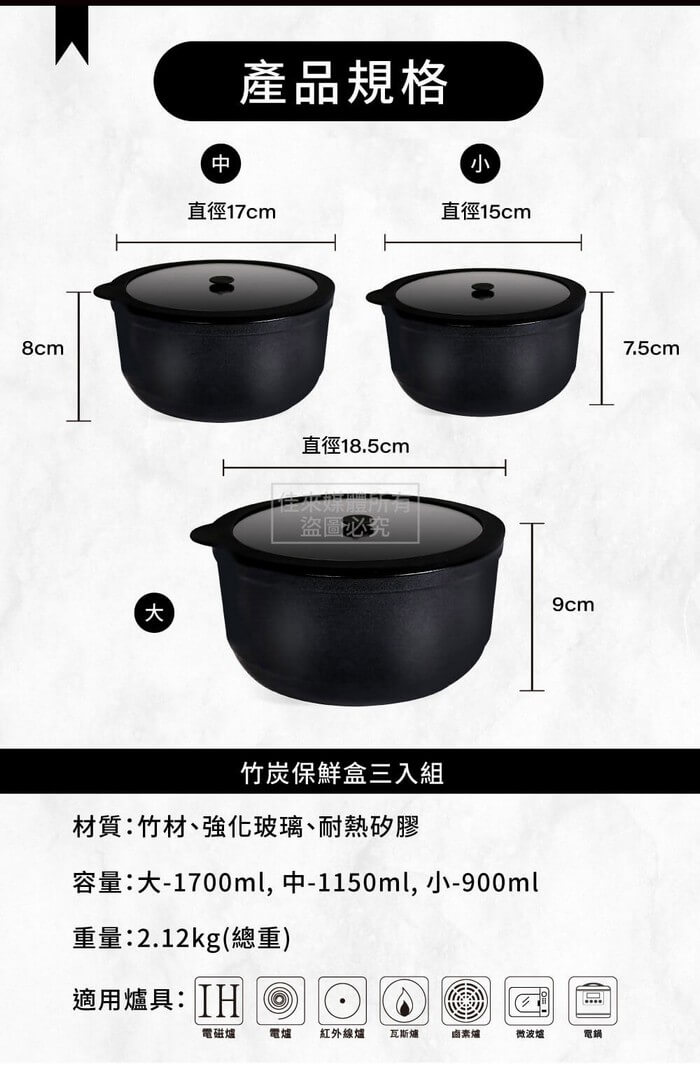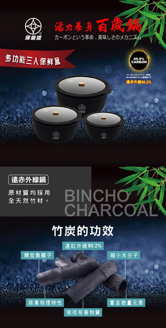 - 主商品:竹炭保鮮盒大x1、竹炭保鮮盒中x1、竹炭保鮮盒小x1