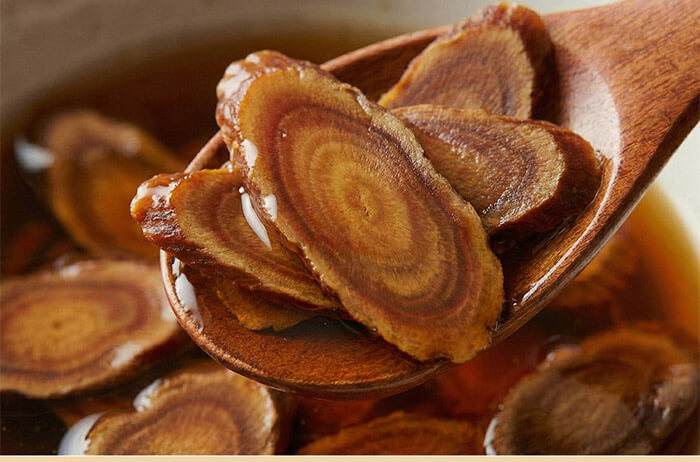 野生蜜漬天級6年根高麗蔘切片。