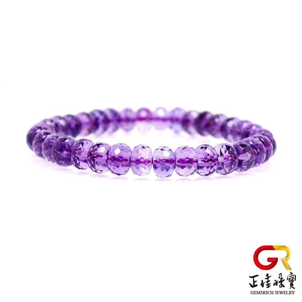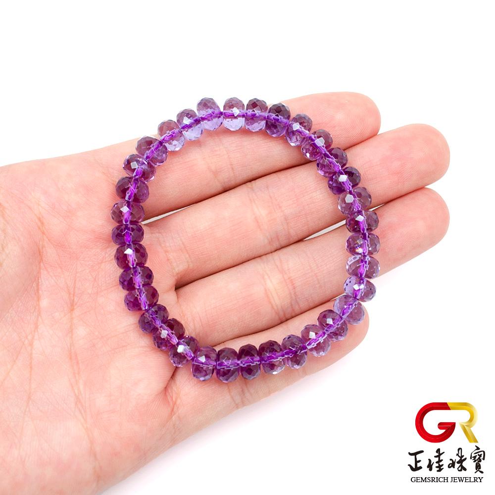 - 主商品:【正佳珠寶】紫水晶 冰翠鑽石紫水晶 5x8mm 紫水晶角度手珠|日本彈力繩