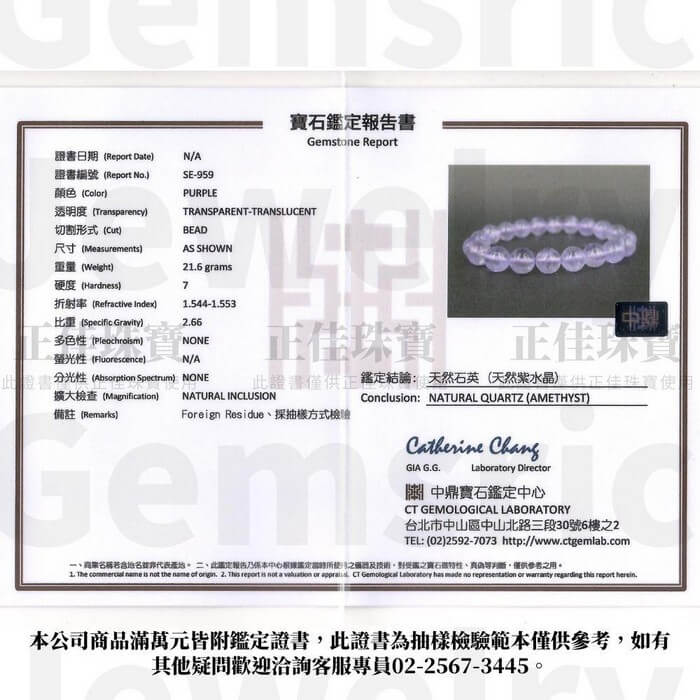 - 主商品尺寸/規格/重量:主角:紫水晶 高品薰衣草紫晶 8.8-9.3mm 薰衣草紫水晶手珠 尺寸:8.8-9.3mm ± 0.5mm 產地:巴西 重量:21g以上 數量:1 顏色:紫色 其他材料:日本彈力繩 編號:BA084 手圍尺寸:此商品手圍尺寸約15.5公分,如有調整需求請洽正佳珠寶客服人員,或在訂單中備註手圍即可,如有備品不足或尺寸調整差異過大,正佳珠寶客服人員會與您聯繫,謝謝。