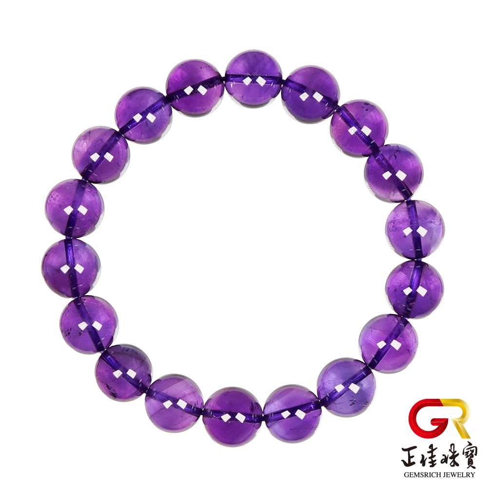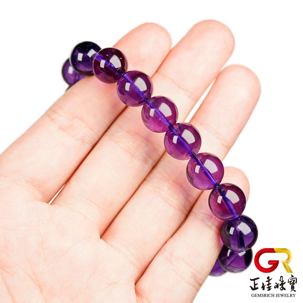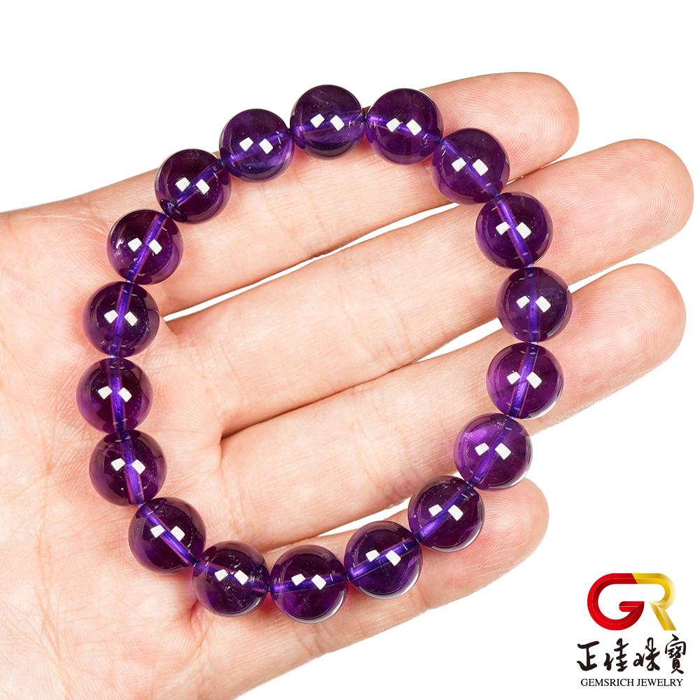 - 主商品:【正佳珠寶】紫水晶 高品冰質濃紫 10.8-11.2mm 南非紫水晶手珠|日本彈力繩