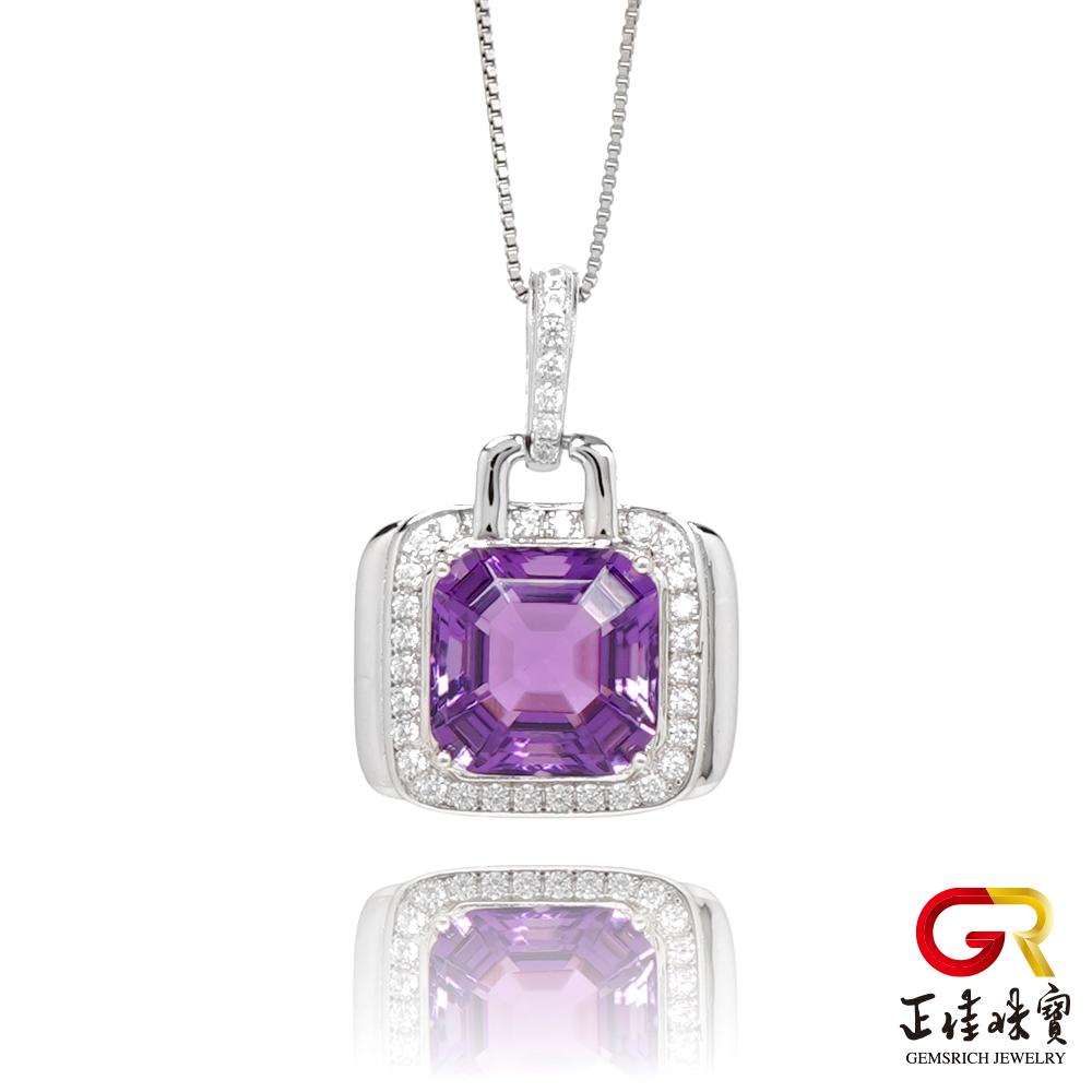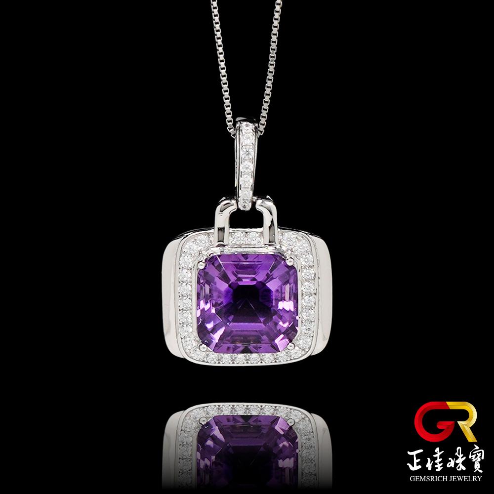 - 主商品:【正佳珠寶】紫水晶 極淨鑽切冰質 水晶吊墜|925銀方晶鋯石微鑲