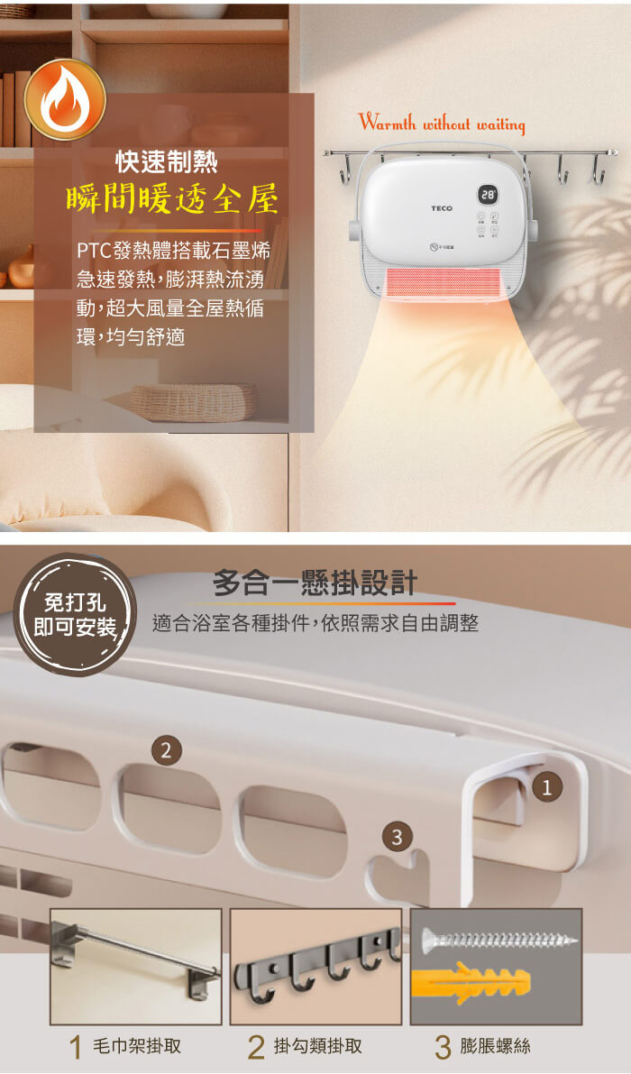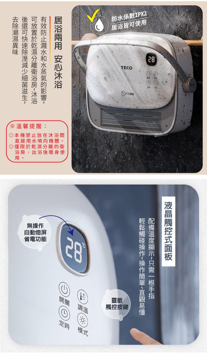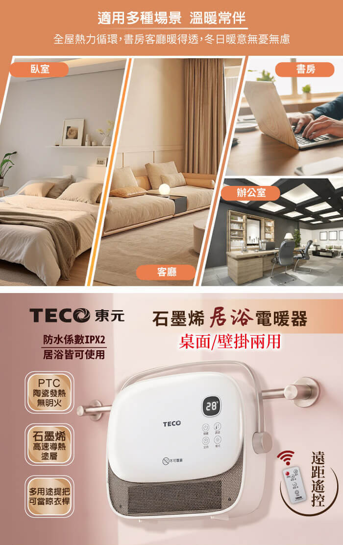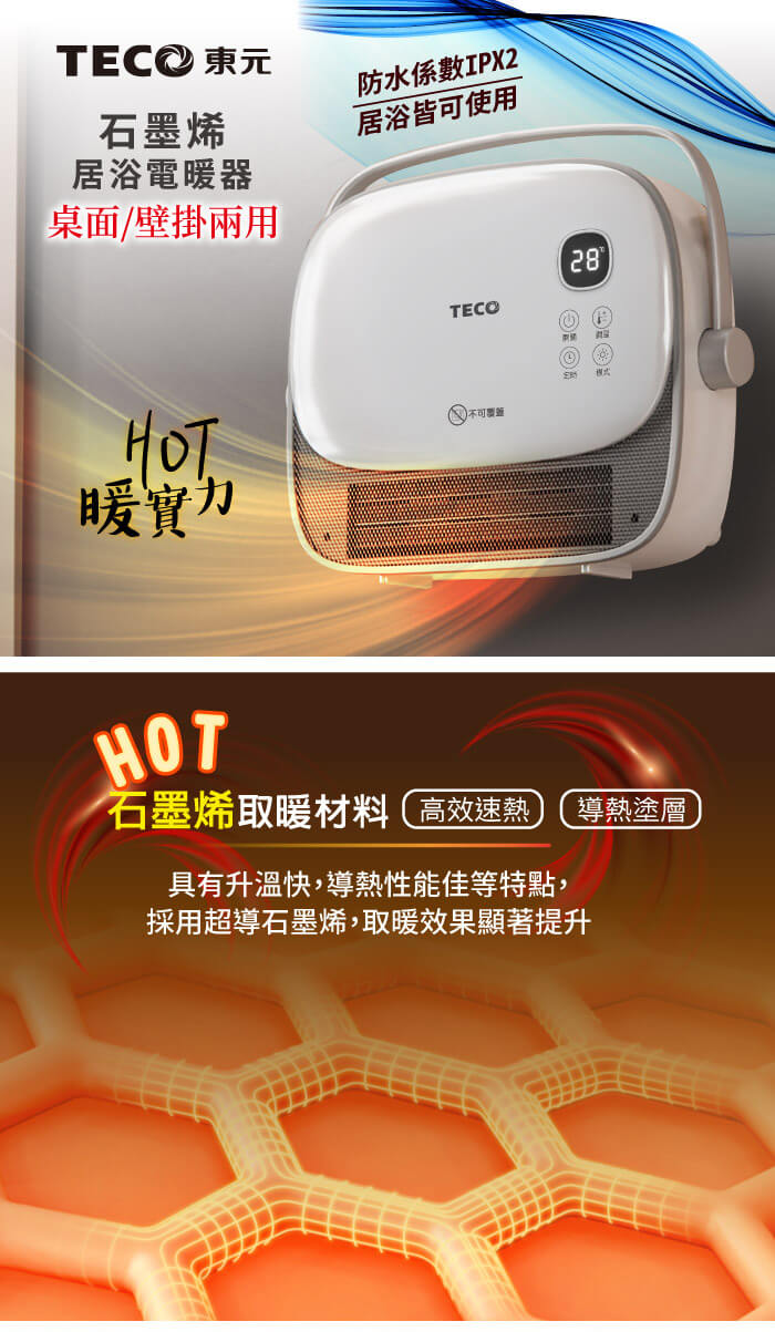 - 主商品:【TECO東元】石墨烯陶瓷居浴電暖器/暖氣機/電暖爐(XYFYN3007CBW)