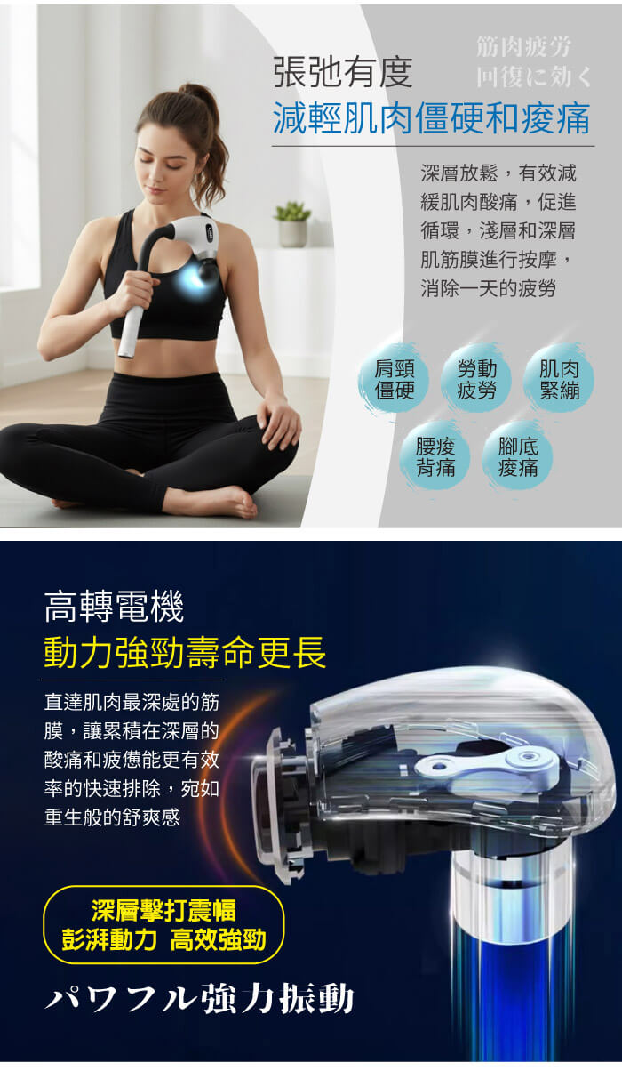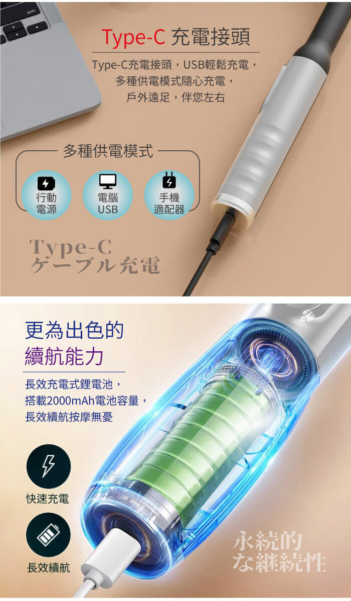 長效充電鋰電池、持久續航按摩無憂。