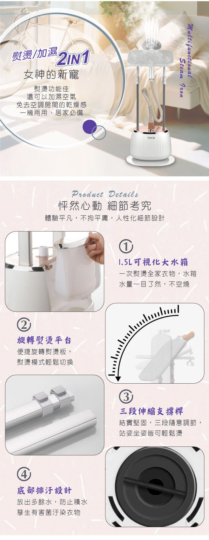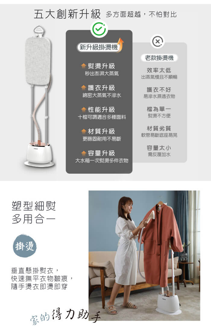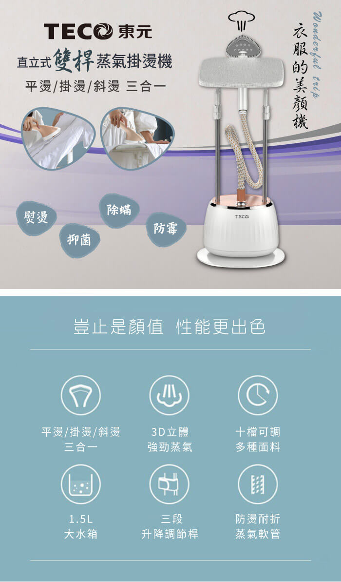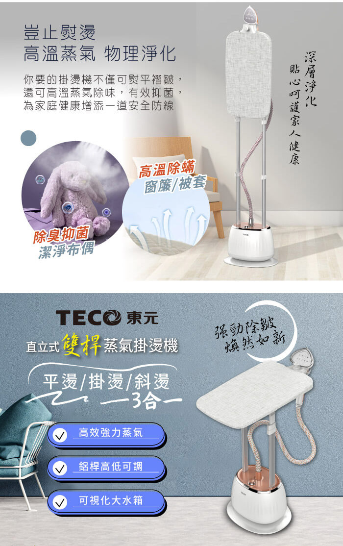 - 主商品:【TECO東元】直立式雙桿蒸氣掛燙機/電熨斗(XYFYG701)