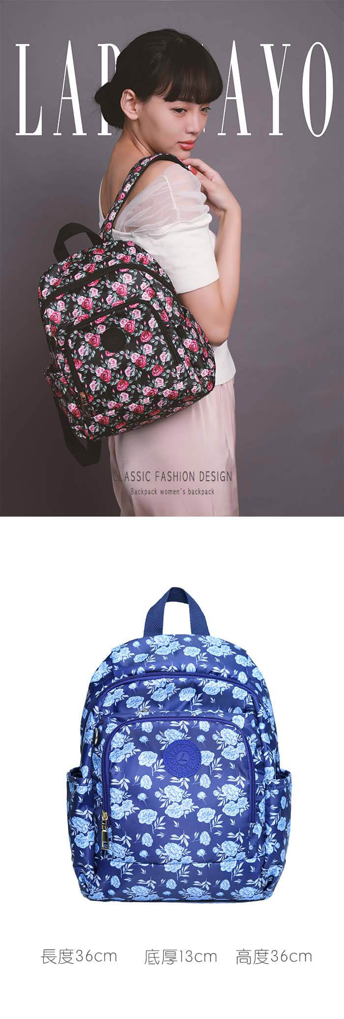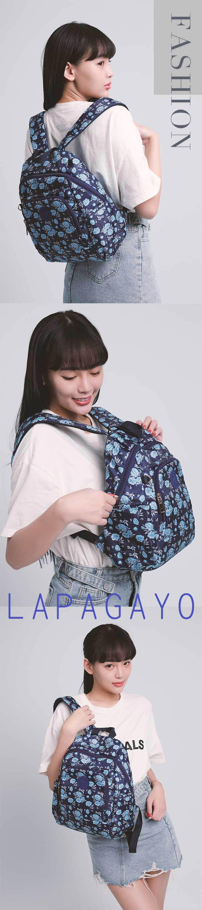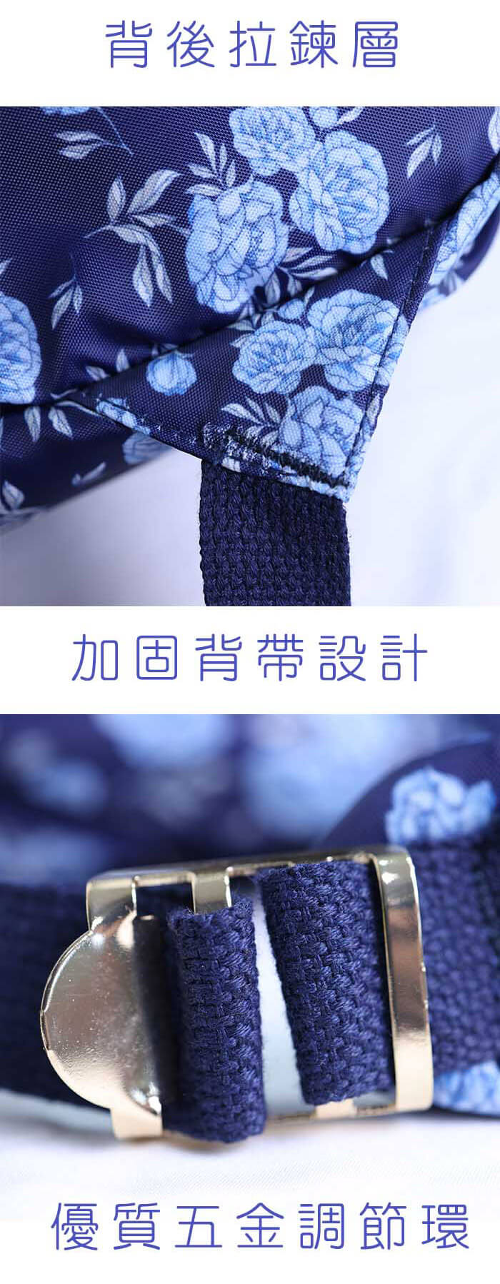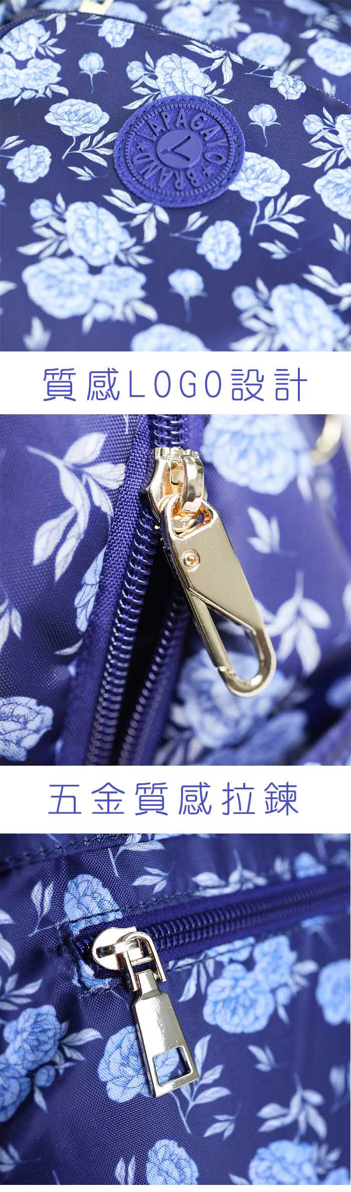 - 主商品:【lapagayo】典雅玫瑰尼龍後背包(藍色)X1