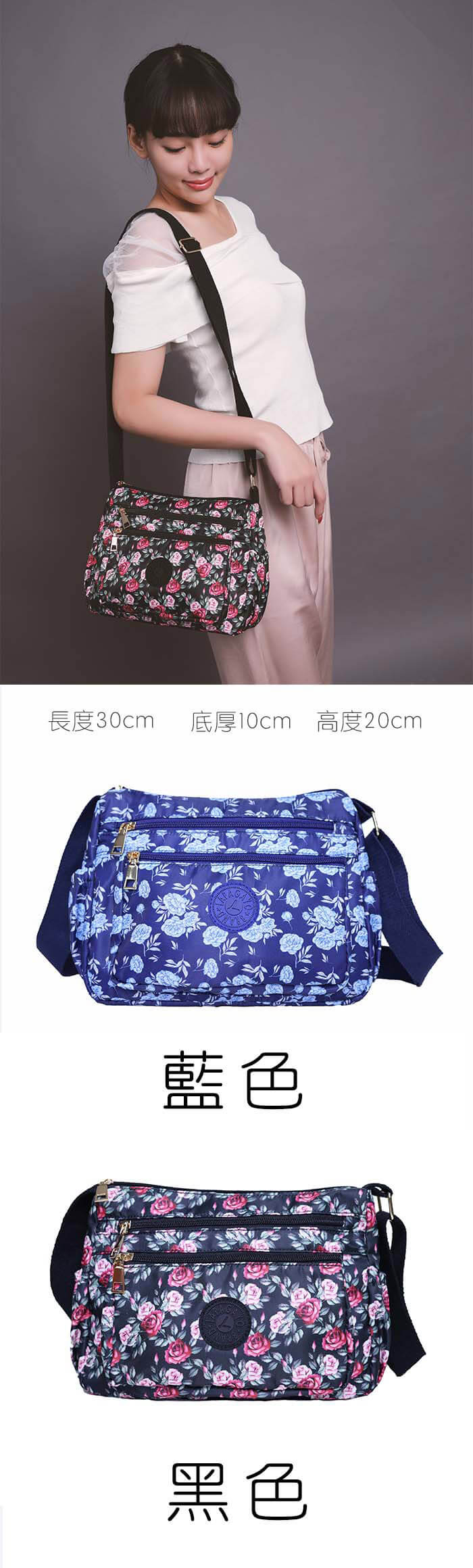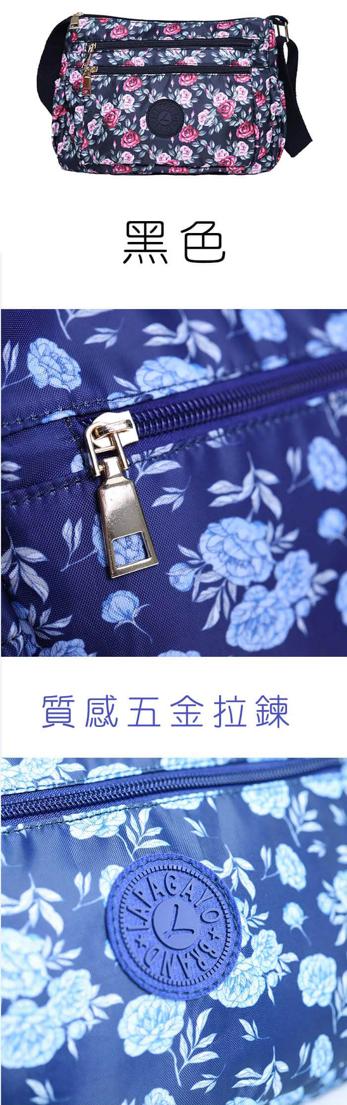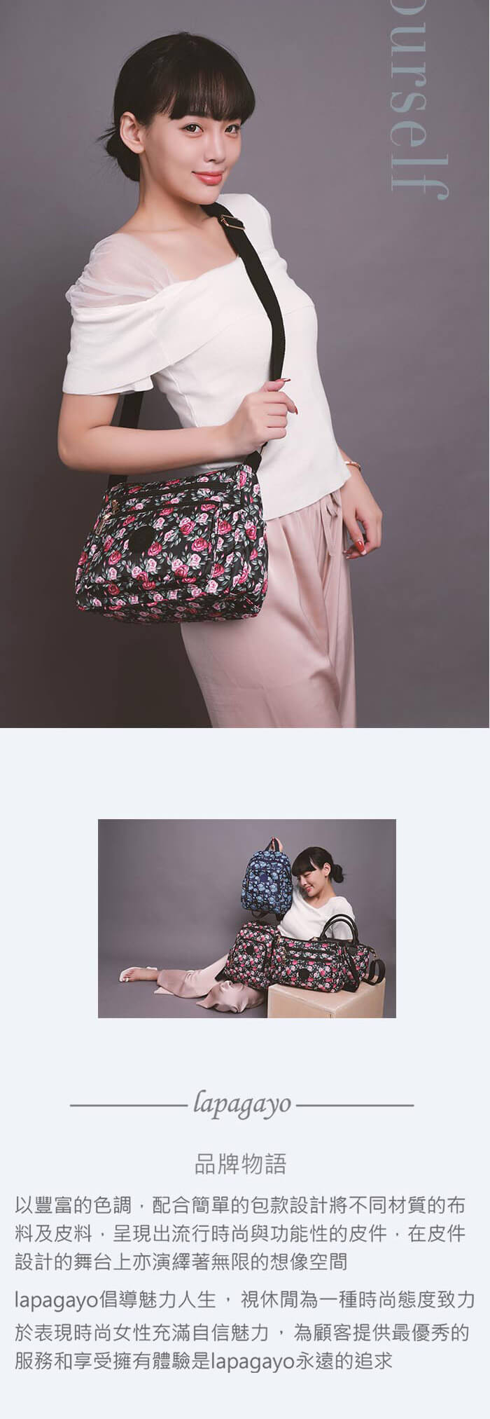 - 主商品:【lapagayo】典雅玫瑰尼龍側肩背包(黑色)X1