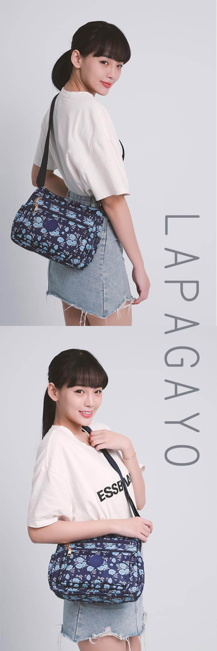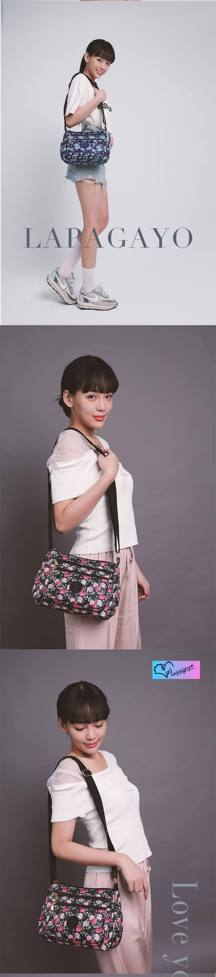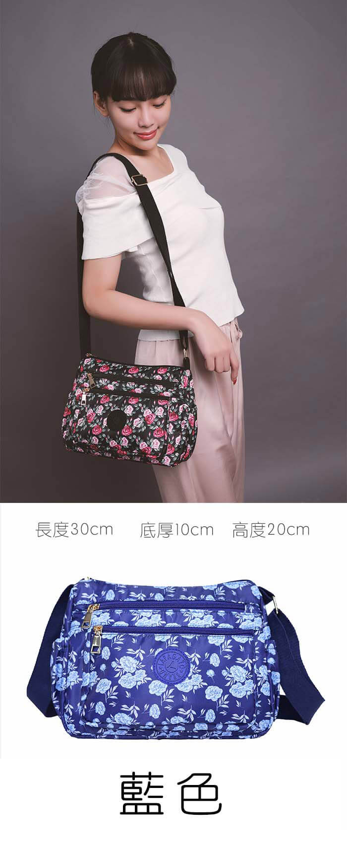- 主商品:【lapagayo】典雅玫瑰尼龍側肩背包(黑色)X1