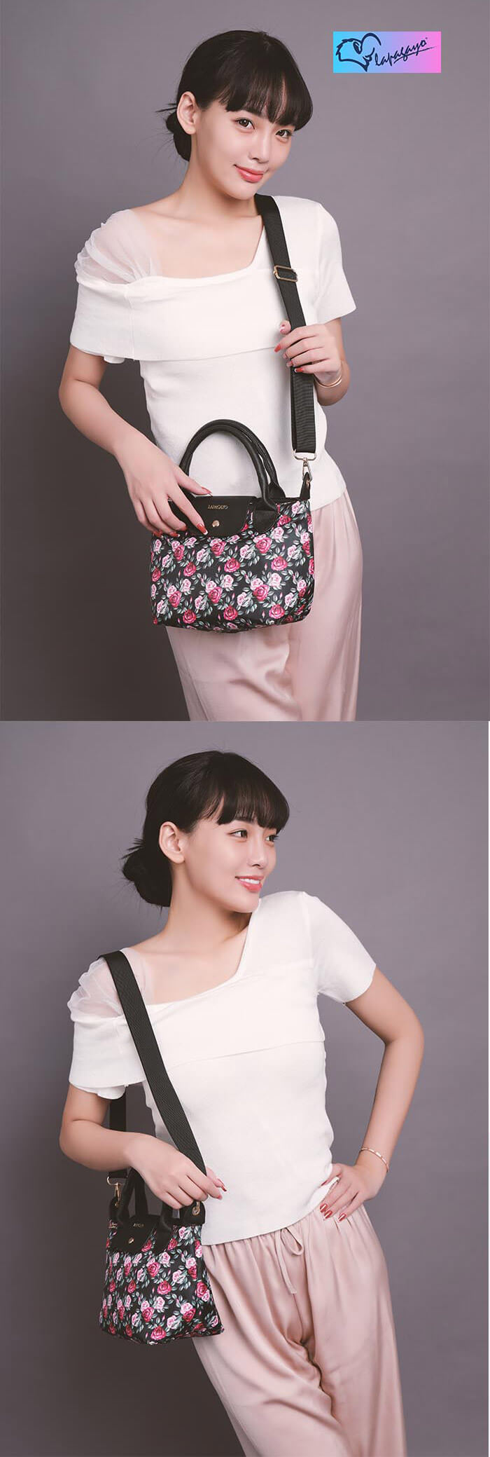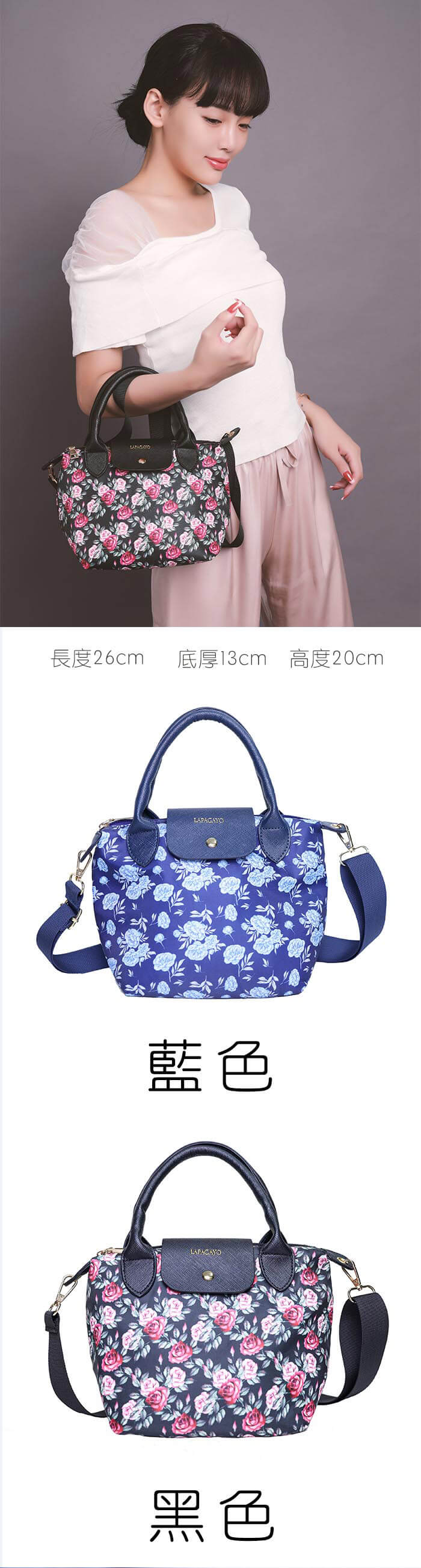 - 主商品:【lapagayo】典雅玫瑰尼龍手提包(黑色)X1