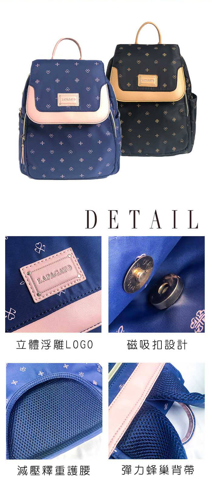 - 主商品:【lapagayo】歐洲皇家圖騰訂製款精品後背包組(黑色)X1