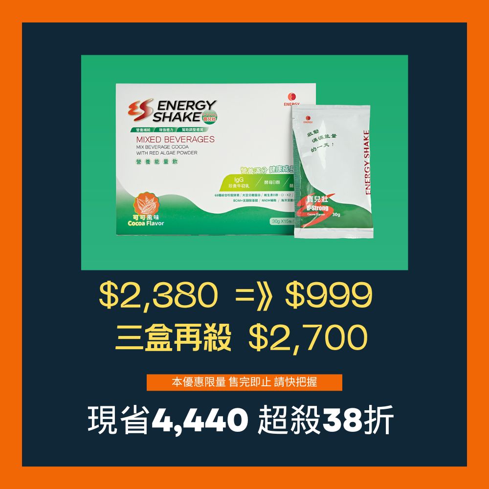 - 主商品:ENERGY SHAKE 寶兒壯B-Strong可可風味營養能量飲(15包/盒)惜福品*3