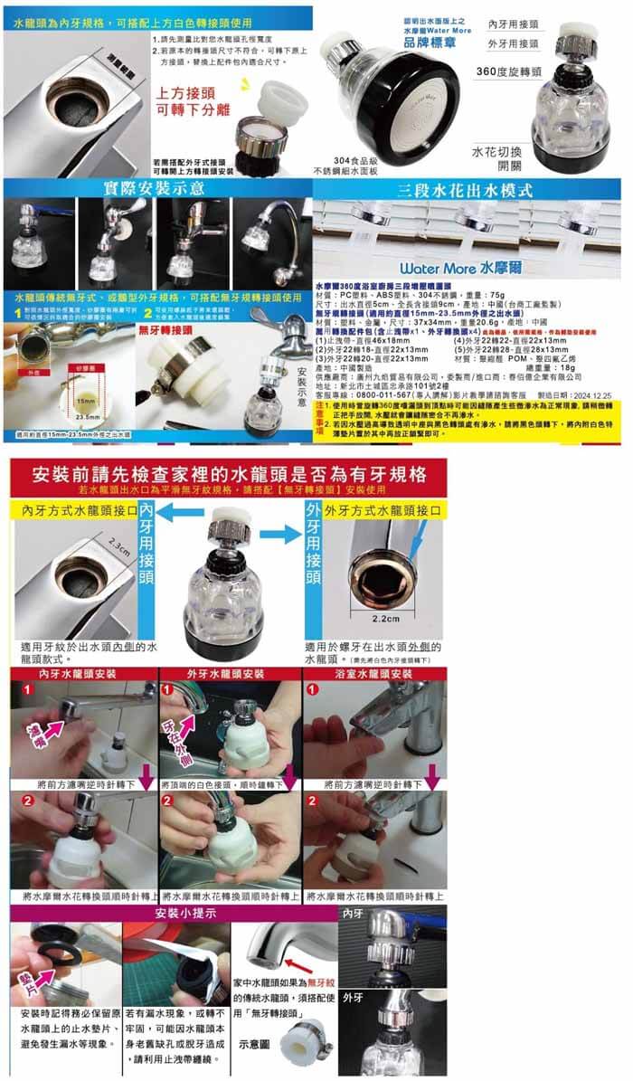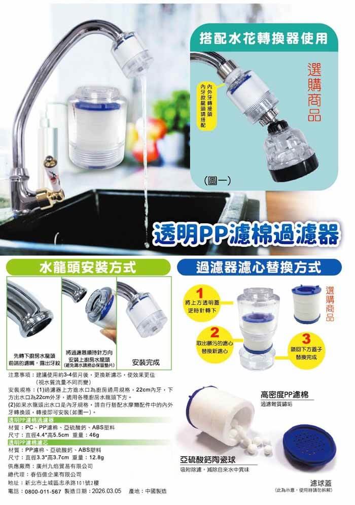 贈品:360度浴室廚房三段增壓噴灑頭x1、透明PP濾棉過濾器x1