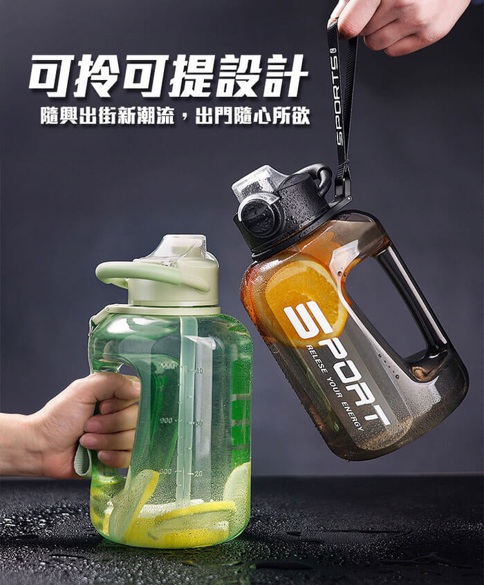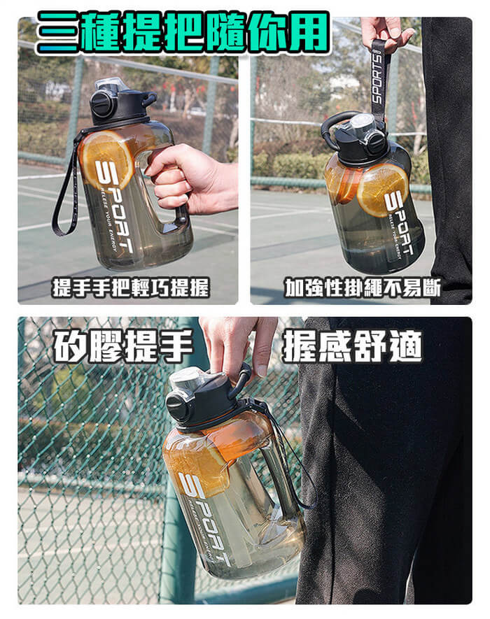 三種提把設計,可拎可提,圓潤寬廣瓶口,裝水清洗皆便利。