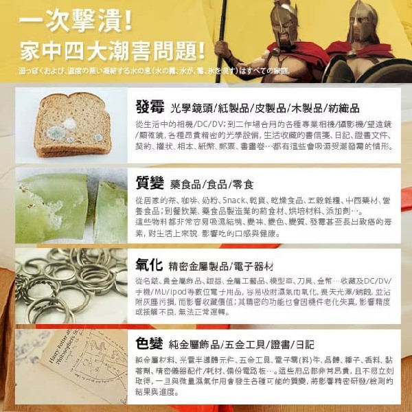 搭配乾燥劑,有效降低濕氣,維持乾燥環境。