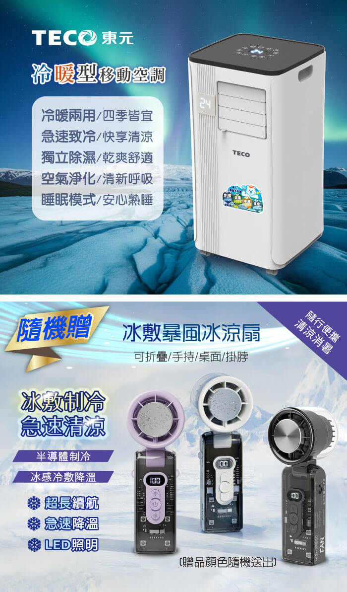 - 主商品:【TECO東元】多功能冷暖型移動式冷氣機/空調(XYFMP-2813FH加贈冰敷制冷折疊冰風扇)