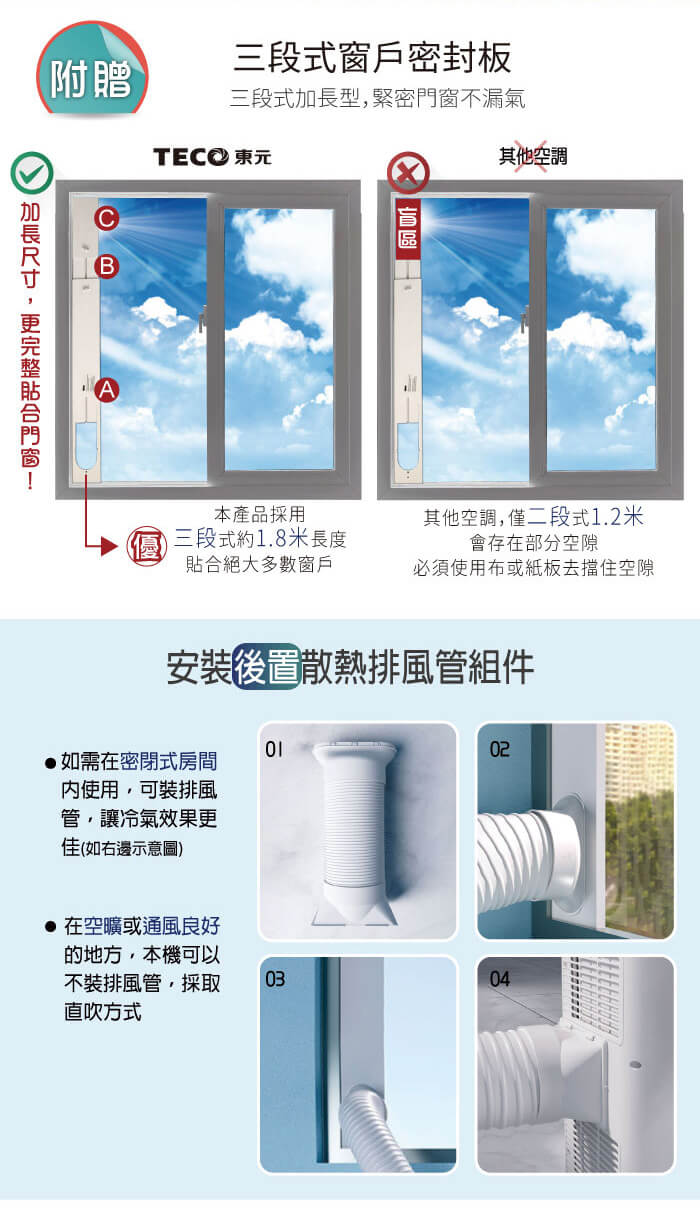 - 配件:使用說明書(含保證卡)、排風管組件、窗戶密封板套件、遙控器。