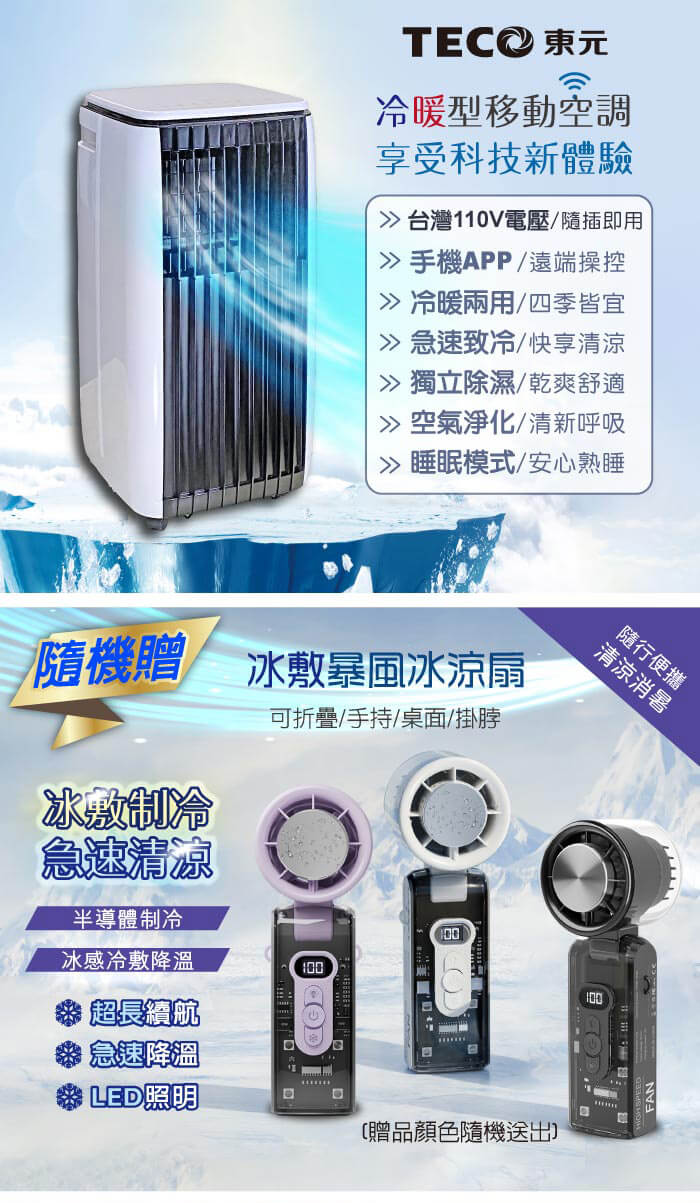 - 主商品:【TECO東元】多功能冷暖型移動式冷氣機/空調(XYFMP-2814FH加贈冰敷制冷折疊冰風扇)