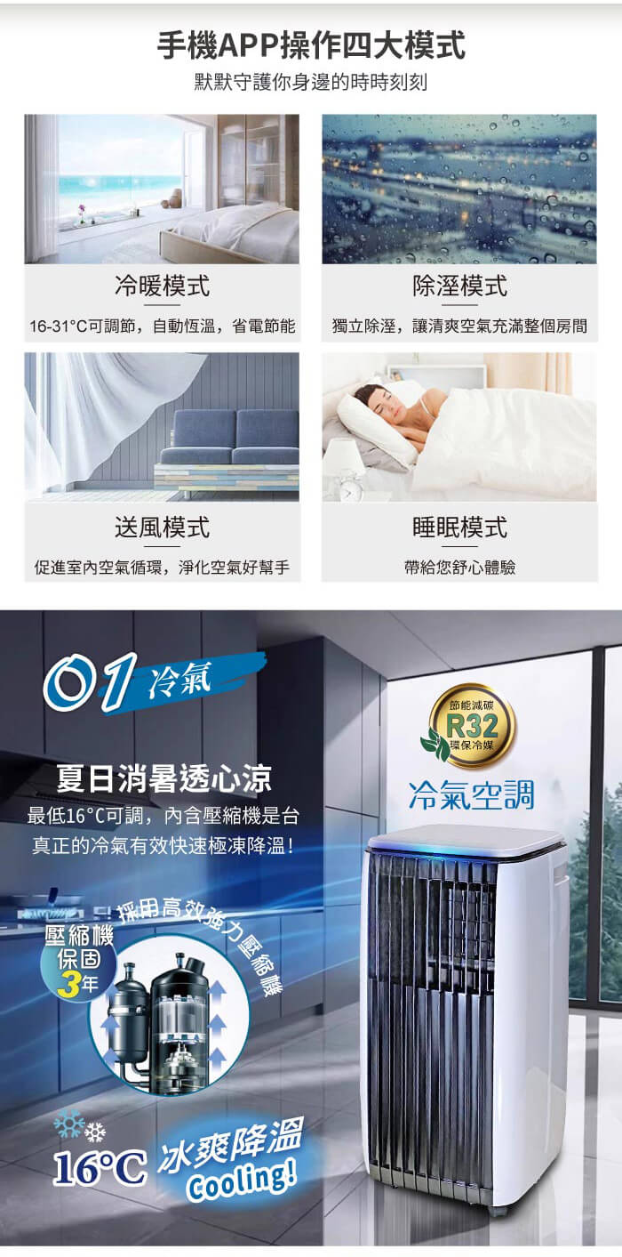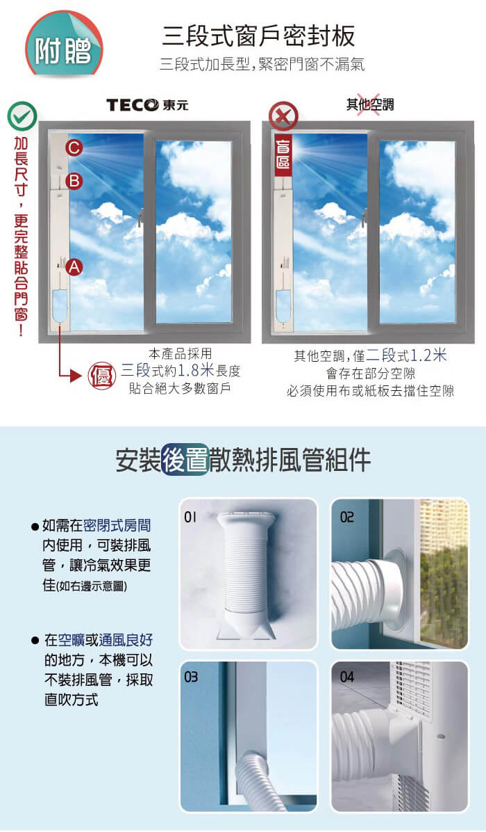 - 配件:使用說明書(含保證卡)、排風管組件、窗戶密封板套件、遙控器。