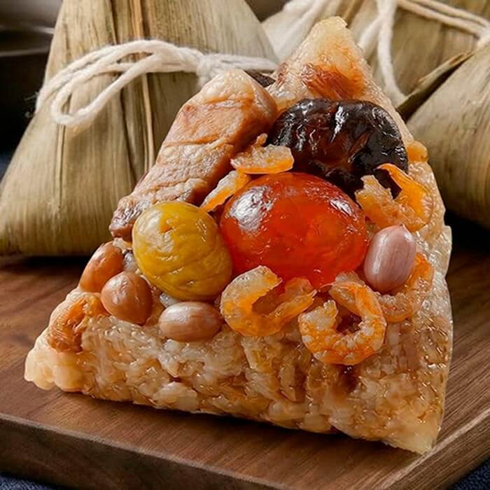 - 材質/食材:糯米,水,豬肉,花生,豬油,醬油,鹹蛋黃(鴨蛋.水.食鹽),栗子,香菇,蝦米(蝦米.鹽),大豆沙拉油,油蔥酥(蔥頭.棕櫚油.玉米澱粉),蔥酥(紅蔥頭.豬油.玉米澱粉),醬油膏,紅蔥頭,蒜,蔥,米酒,胡椒鹽(胡椒.L-麩酸鈉.鹽.葡萄糖.肉桂.二氧化矽.甘草.丁香.五加皮.小茴.山奈.香料),白胡椒粉(白胡椒),碘鹽(鹽.碘酸鉀),冰糖,焦糖糖漿,薑,花椒,八角,L-麩酸鈉。