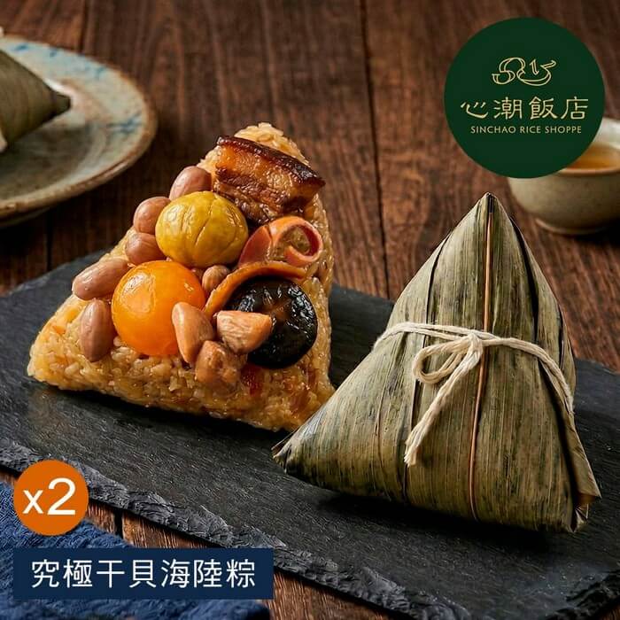 - 主商品:【心潮飯店】究極干貝海陸粽(3入)x2袋