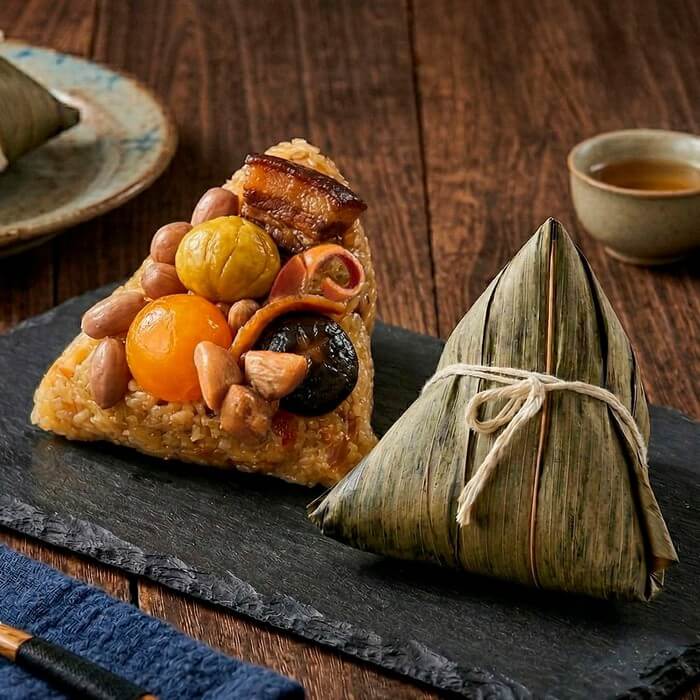 - 材質/食材:長糯米、水、醬油、大豆沙拉油、細糖(水、蔗糖)、豬五花肉塊(產地:台灣)、油蔥酥(豬油(產地:台灣)、紅蔥頭)、珠貝、魷魚、香菇、鹹蛋黃(鴨蛋黃、鹽)、栗子、花生、L-麩酸鈉、白胡椒粉、薑、八角。