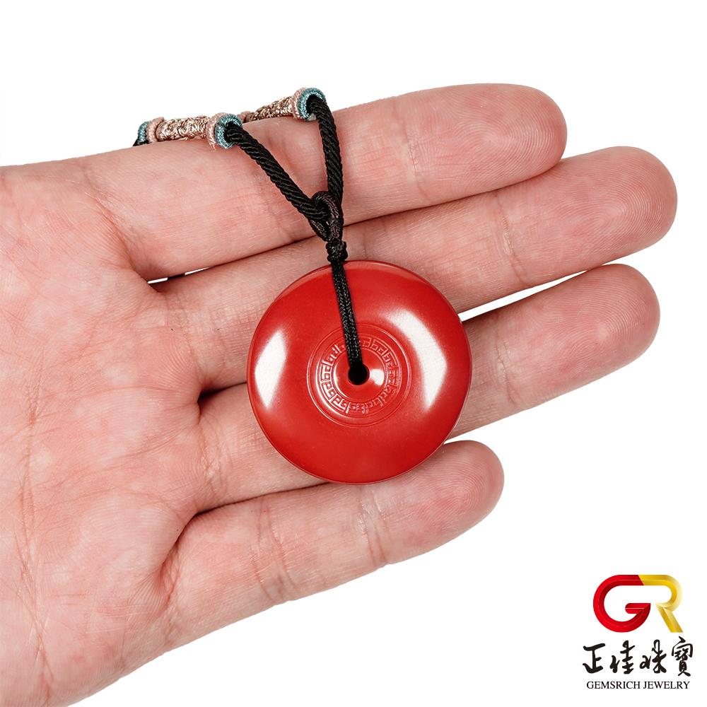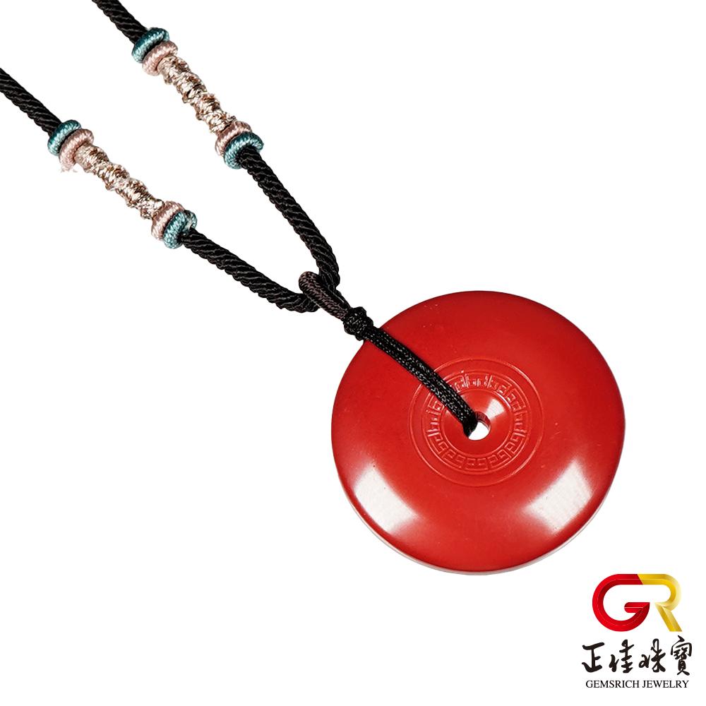 - 主商品:【正佳珠寶】帝王硃砂 轉運回紋 平安扣 34mm 硃砂吊墜|可調式棉繩